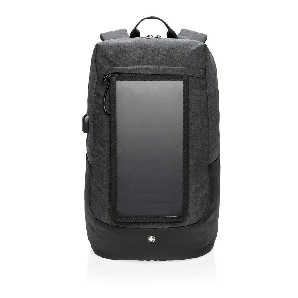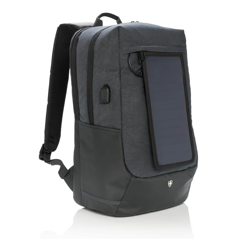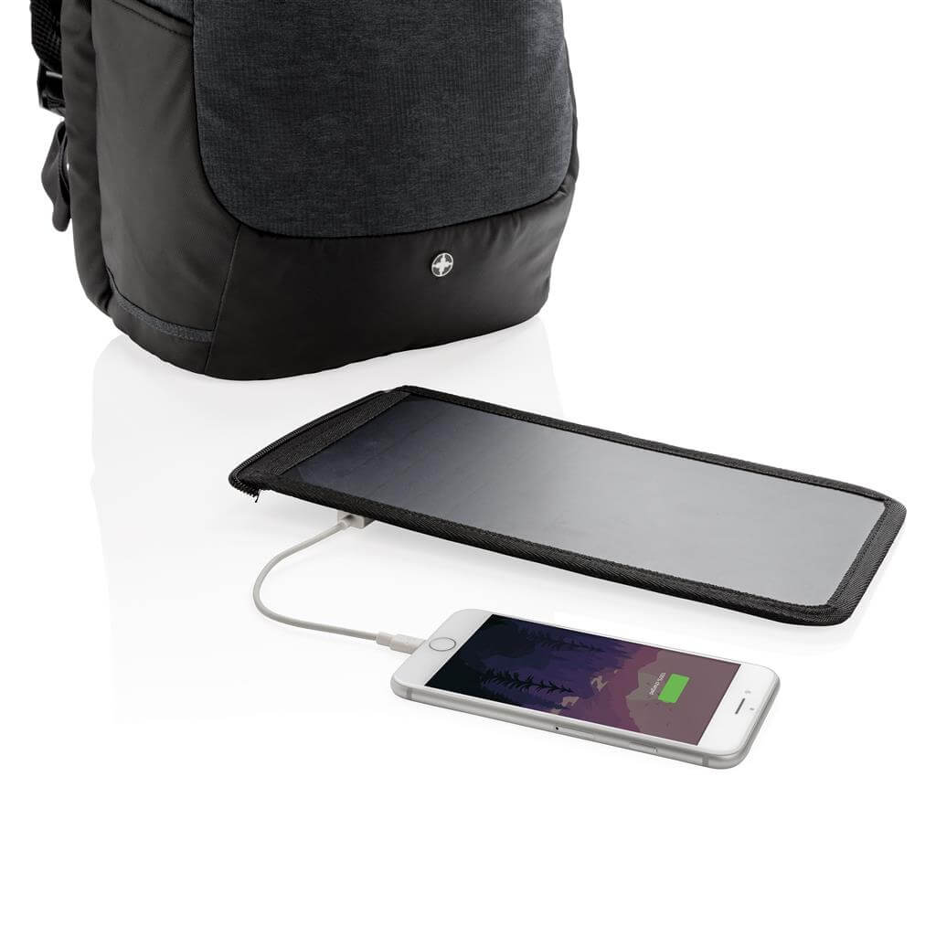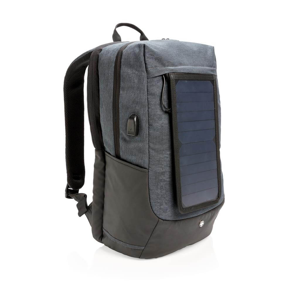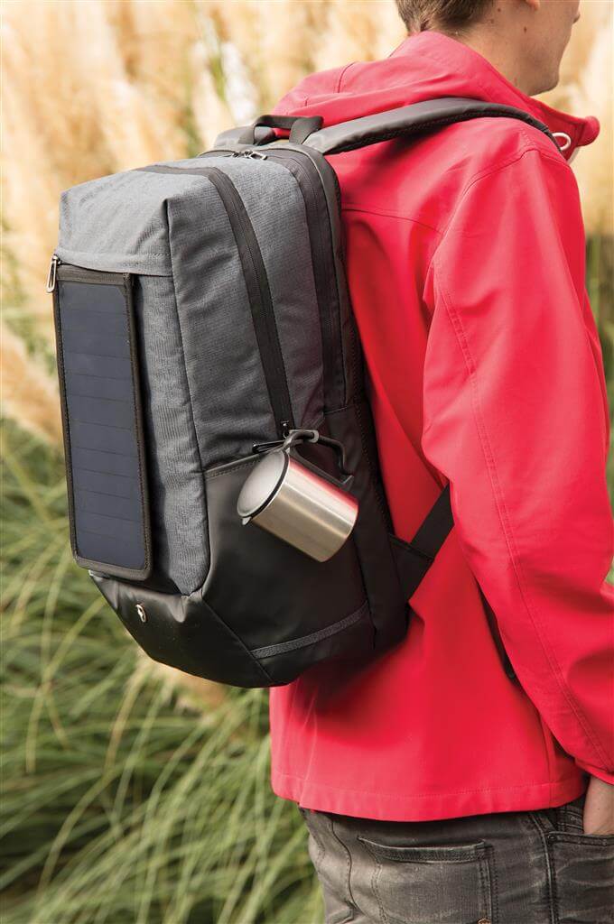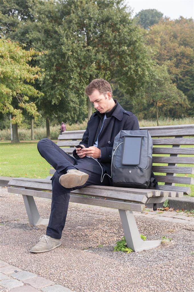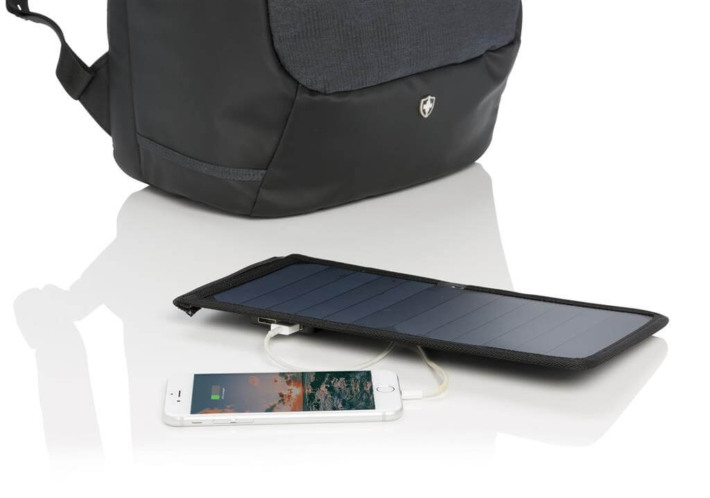 Batoh na 15,6 "notebook vrátane vysoko citlivého kvalitného solárneho panelu 3. generácie od prednej značky solárnych produktov SunPower. Solárny panel ponúka výkon 7 W a dokáže dobiť telefón už za 3-4 hodiny. Ideálne pre dobíjanie telefónov, fotoaparátov alebo powerbaniek na cestách. Solárny panel ponúka 2 USB výstupy pre dobíjanie dvoch zariadení súčasne. Po strane nájdete 1 USB port navyše, vhodný pre pripojenie externej powerbanky. Solárny panel nevyužíva žiadnu batériu, ale transformuje slnečné žiarenie priamo na slnečnú energiu. ochranný vzor®.