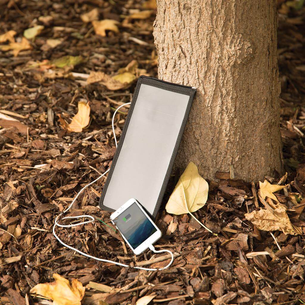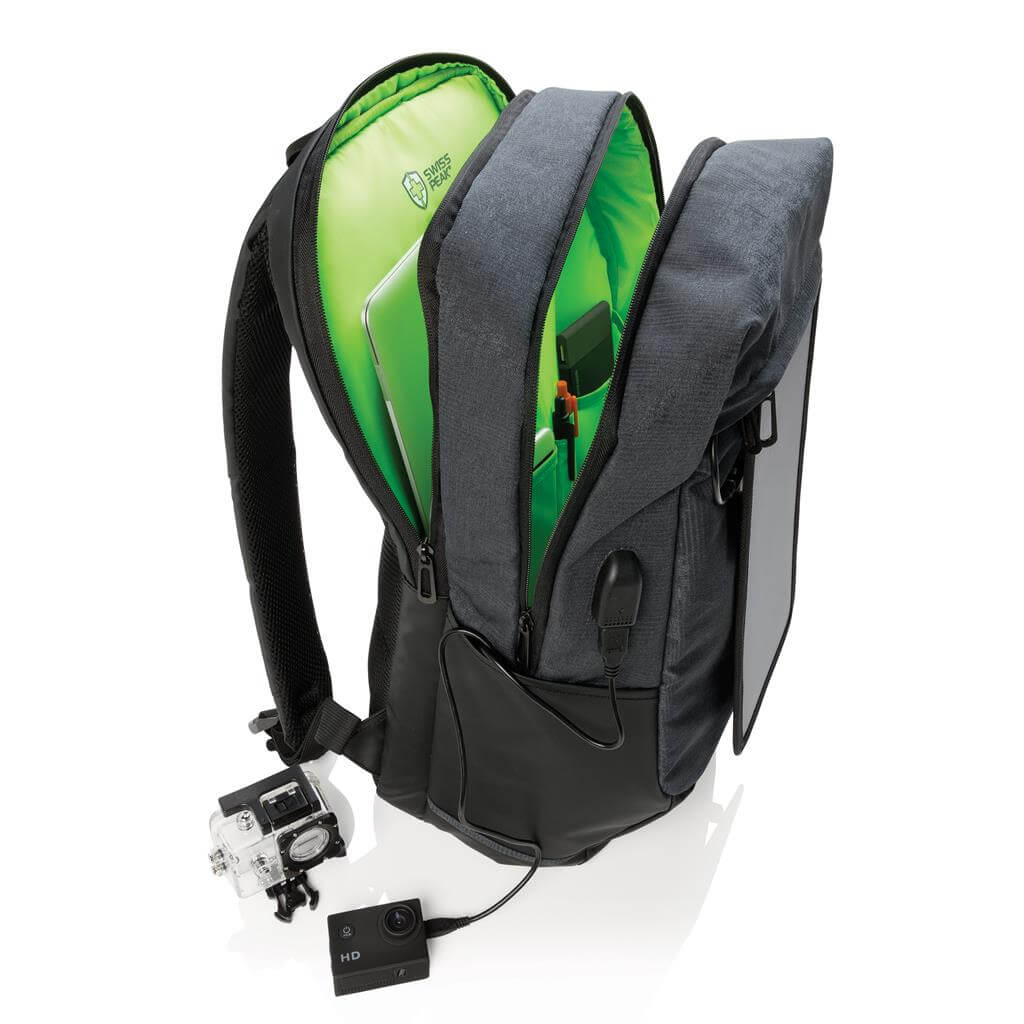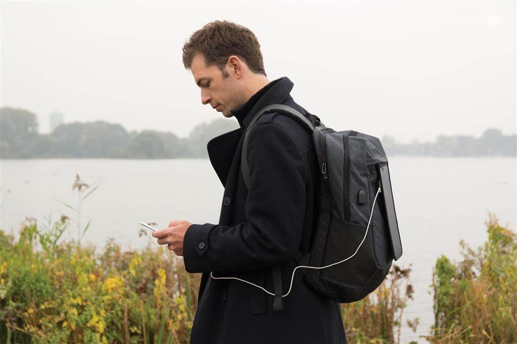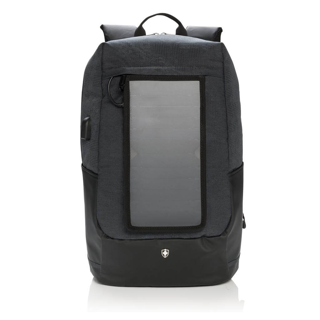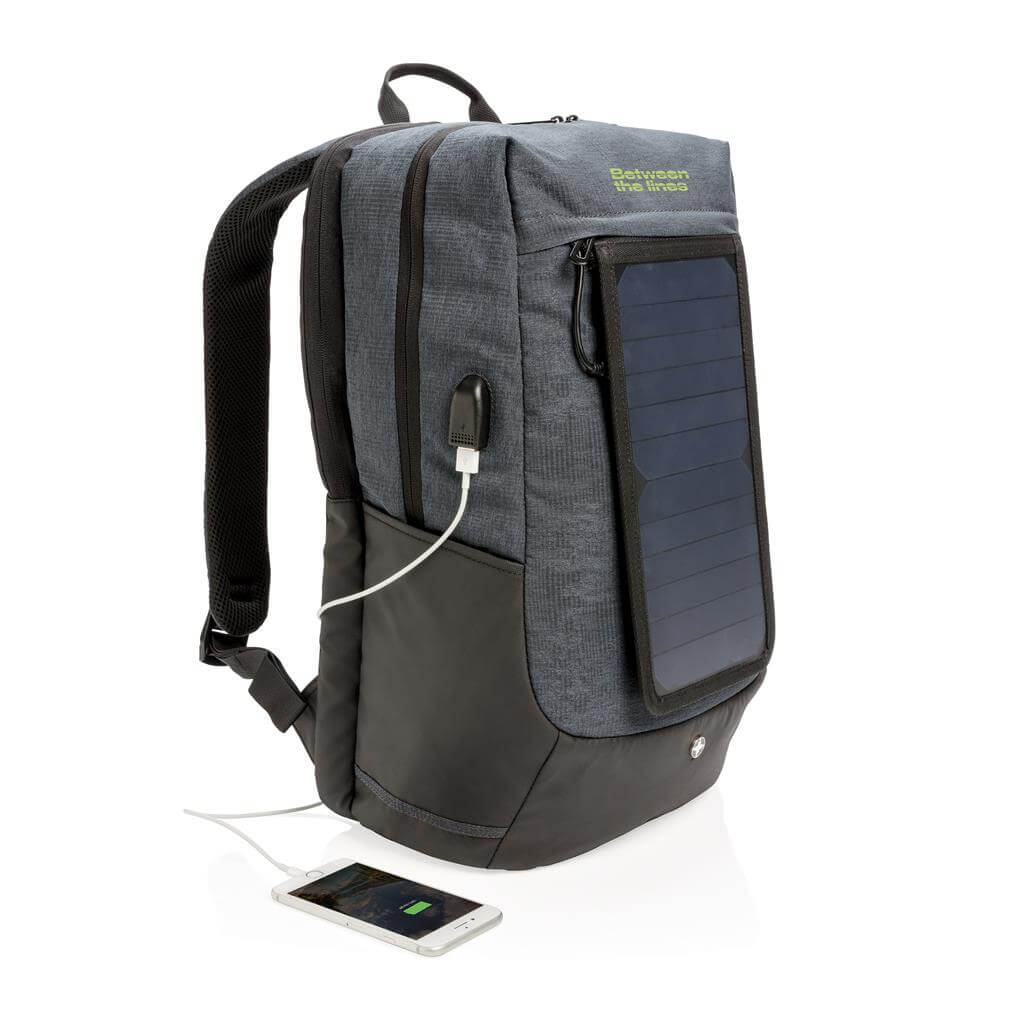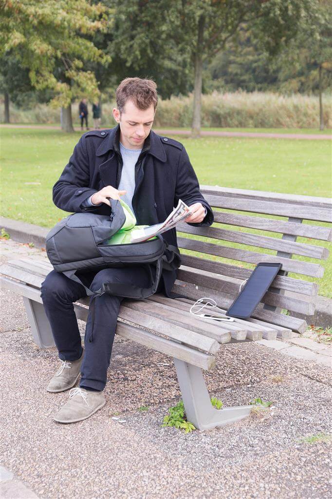 Batoh na 15,6 "notebook vrátane vysoko citlivého kvalitného solárneho panelu 3. generácie od prednej značky solárnych produktov SunPower. Solárny panel ponúka výkon 7 W a dokáže dobiť telefón už za 3-4 hodiny. Ideálne pre dobíjanie telefónov, fotoaparátov alebo powerbaniek na cestách. Solárny panel ponúka 2 USB výstupy pre dobíjanie dvoch zariadení súčasne. Po strane nájdete 1 USB port navyše, vhodný pre pripojenie externej powerbanky. Solárny panel nevyužíva žiadnu batériu, ale transformuje slnečné žiarenie priamo na slnečnú energiu. ochranný vzor®.