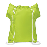 210D batoh so sťahovacou šnúrkou v tvare trička. Ideálny na športové podujatia. Batoh je možné plnofarebne, celoplošne potlačiť z oboch strán. Je možné si vybrať farebné prevedenie jeho tela a aj sťahovacích šnúrok (obr. v galérii).