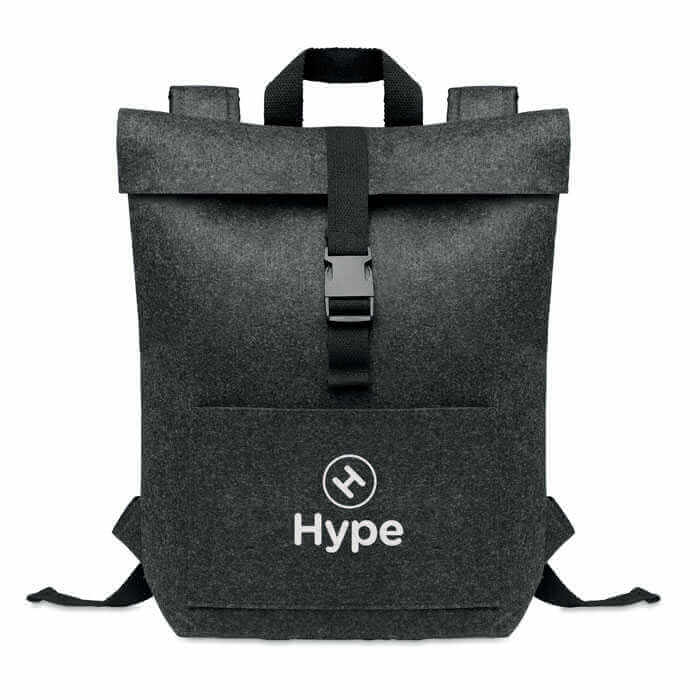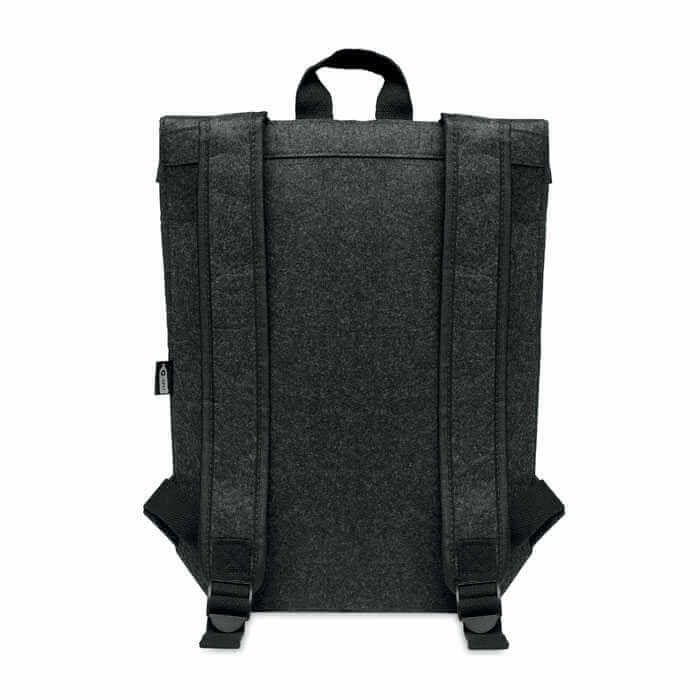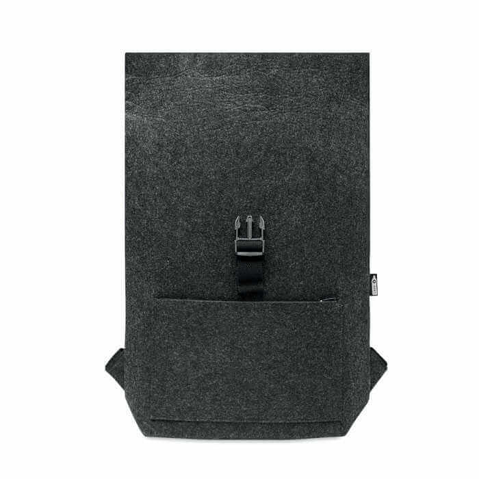 Plstený batoh RPET s bavlneným popruhom na zapínanie a vreckom na zips na prednej strane. Má priehradku na notebook, takže je tento batoh ideálny na každodenné používanie do práce alebo do školy. Predné vrecko využijete na uloženie menších predmetov a do hlavnej priehradky sa zmestia všetky ostatné veci a doplnky. Taška je vyrobená z recyklovaného PET plastu. Hmotnostný limit na prenášanie je 5 kg.