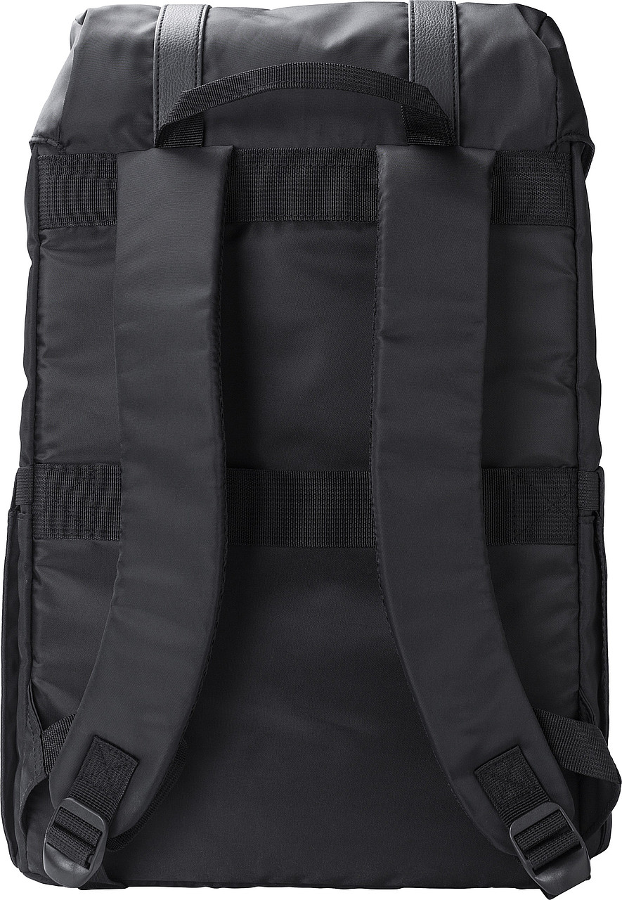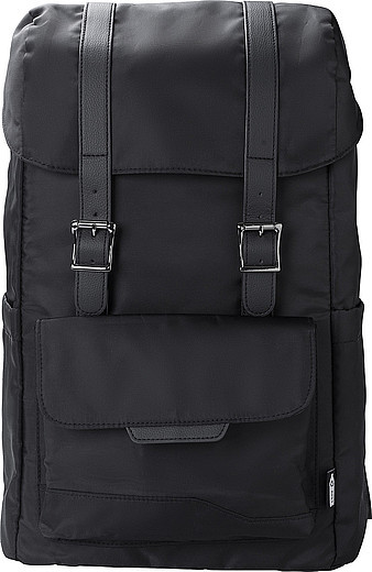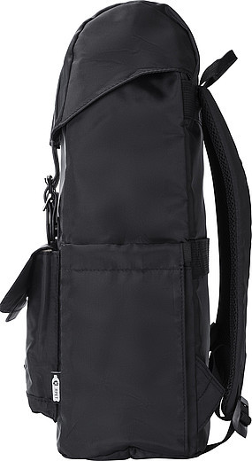 RPET (290T) polyesterový keprový plecniak s chlopňou. PU pásky. Dve vrecká na fľašu po stranách. Vrecko na zapínanie na magnet na prednej strane. Zapínanie na šnúrku pre vnútorné vrecko. Miesto pre notebook (15"). Páska na uchytenie na teleskopické madlo kufra na zadnej strane. Vodoodpudivý povrch. Rozmery: 30 x 16 x 42 cm