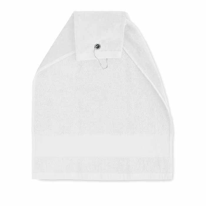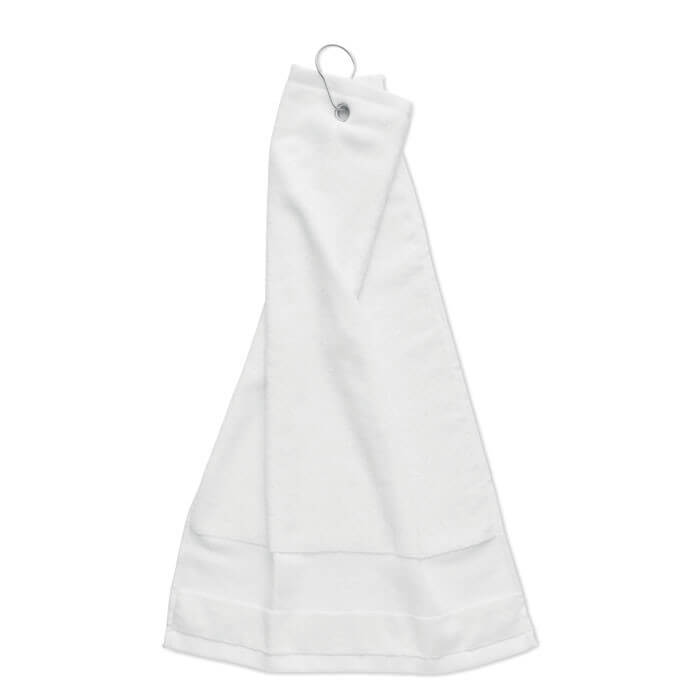 Bavlnený golfový uterák s medeným otvorom a krúžkom na hornej strane, ktorý je možné použiť na zavesenie na golfový bag. Gramáž 350 gr/m2. Veľkosť uteráka: 40x60 cm. Tento golfový uterák používajte na osušenie golfových loptičiek, palíc alebo rúk. Zlepšite priľnavosť utretím svojho vybavenia do sucha a udržujte ich v perfektnom stave.