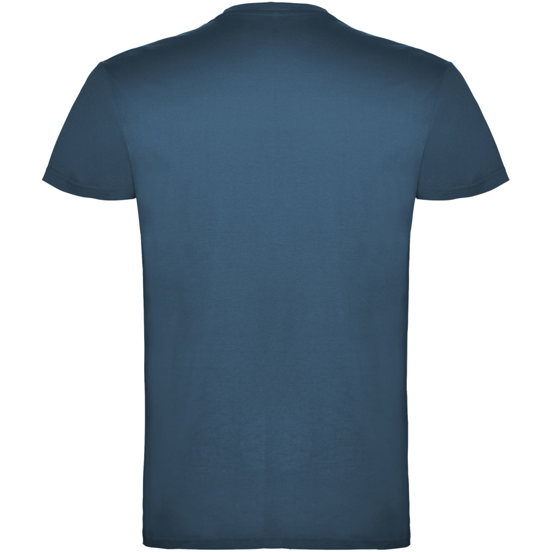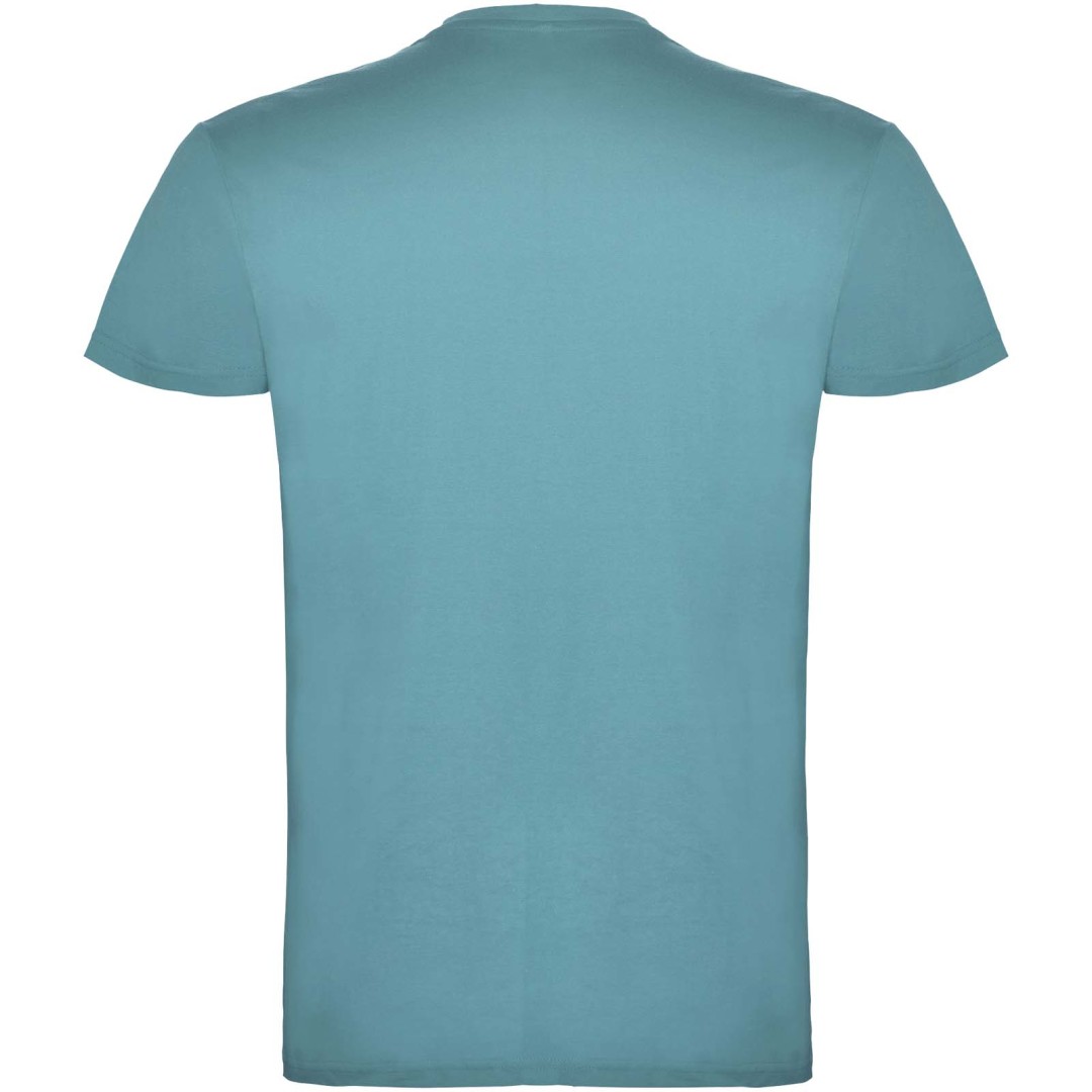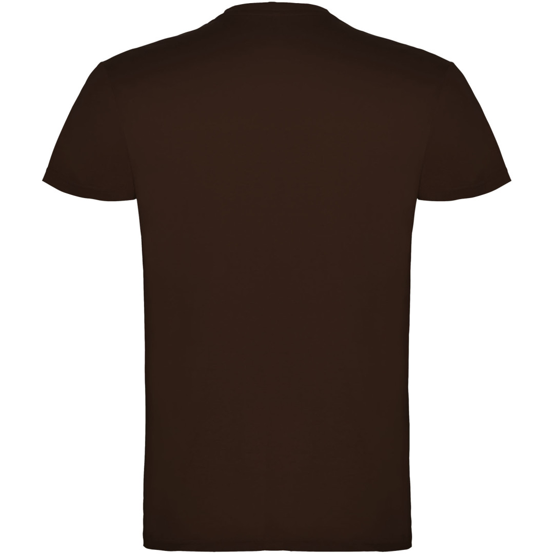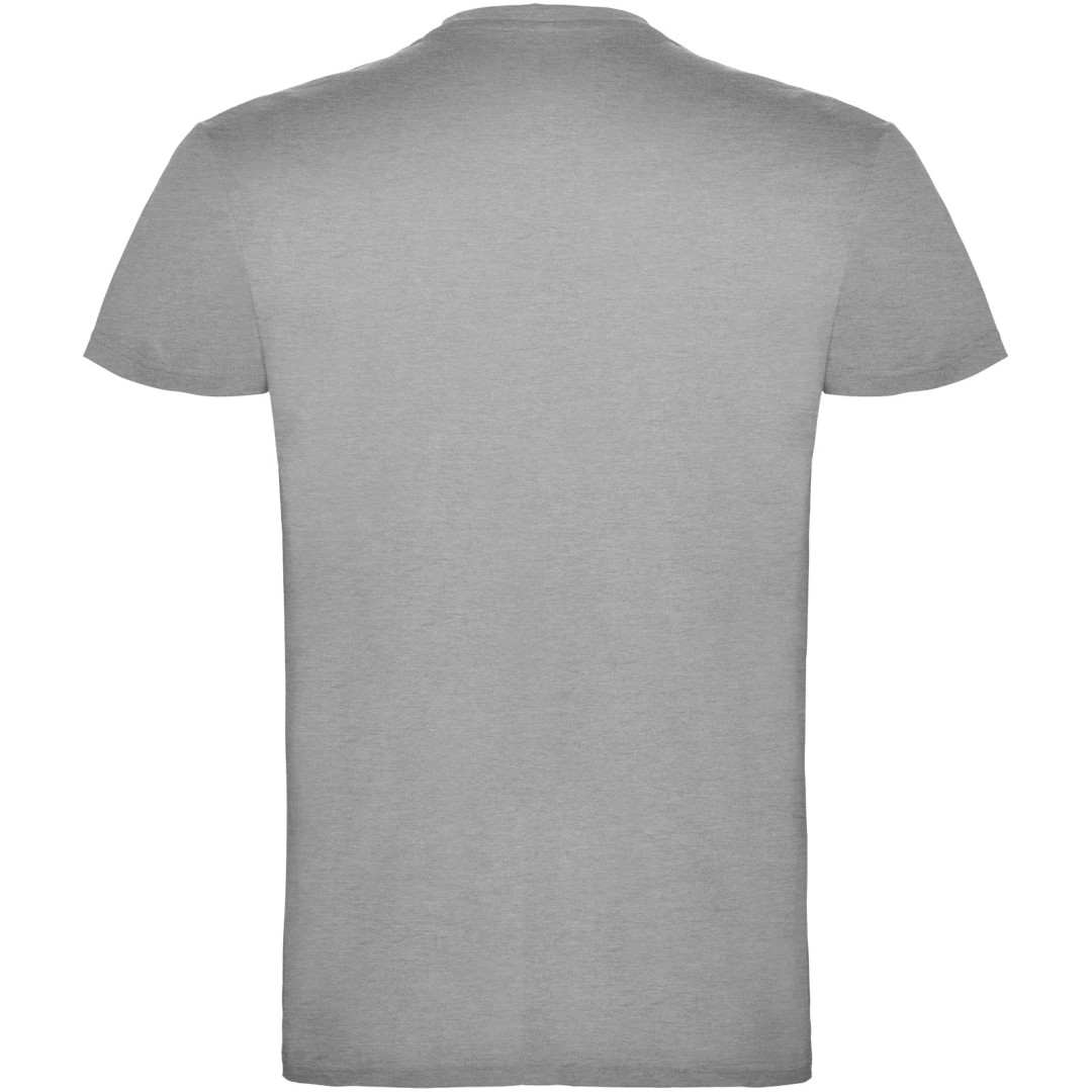 Tričko s krátkym rukávom a s dvojvrstvovým výstrihom z elastanu, vyrobené z trubicovej tkaniny, pre dospelých. Zosilnené kryté švy v golieri. Odnímateľný štítok. Model meria 190 cm a má na sebe veľkosť L. Jednolícny džersej 100% Bavlna, 155 g/m2.