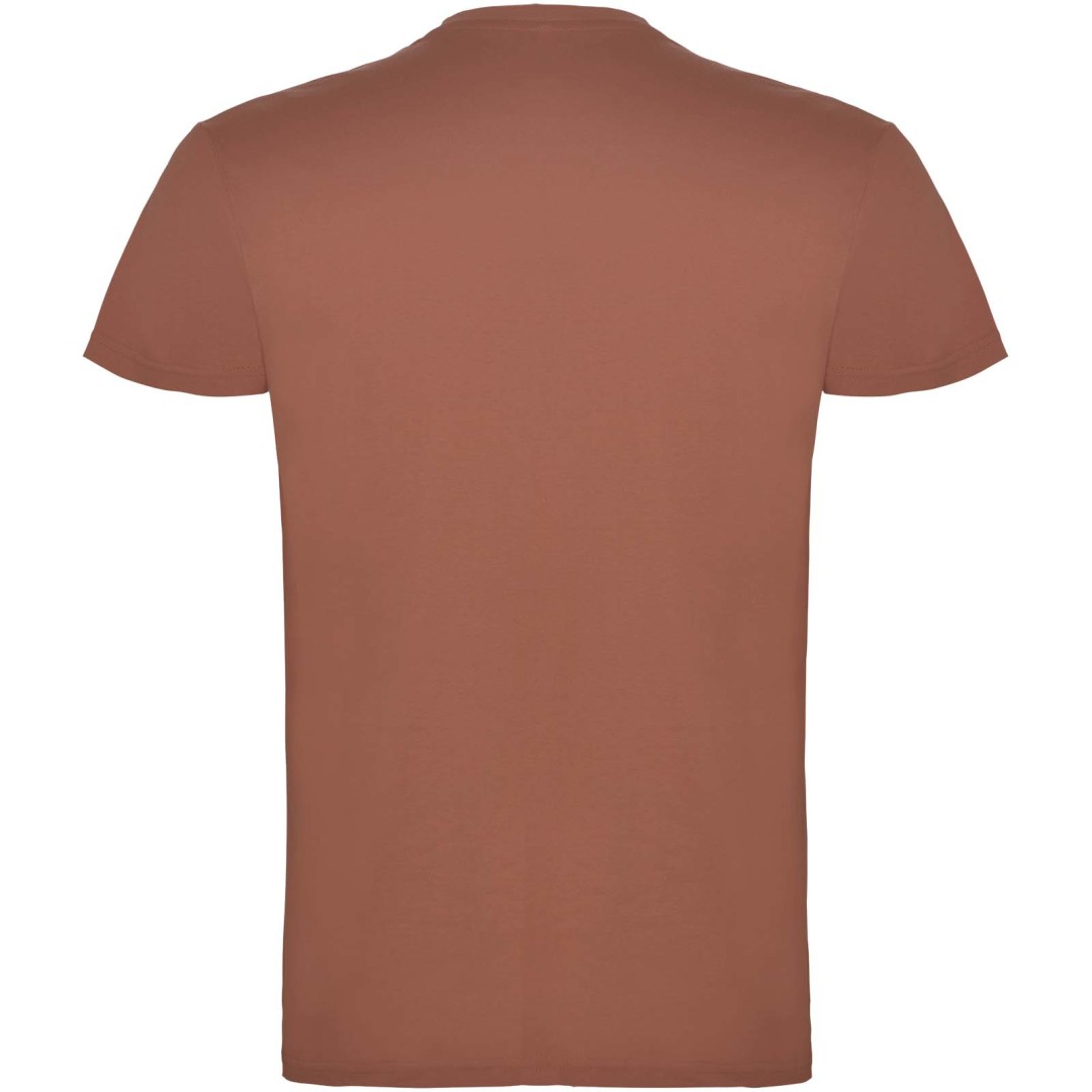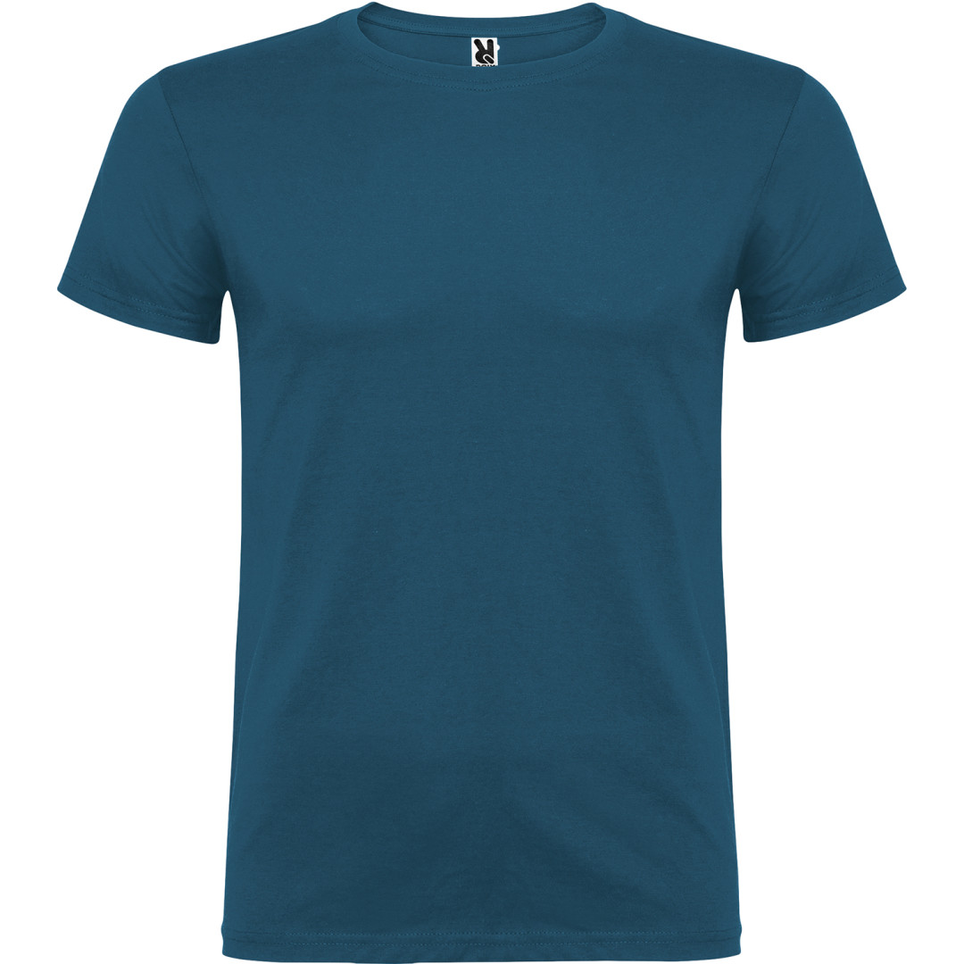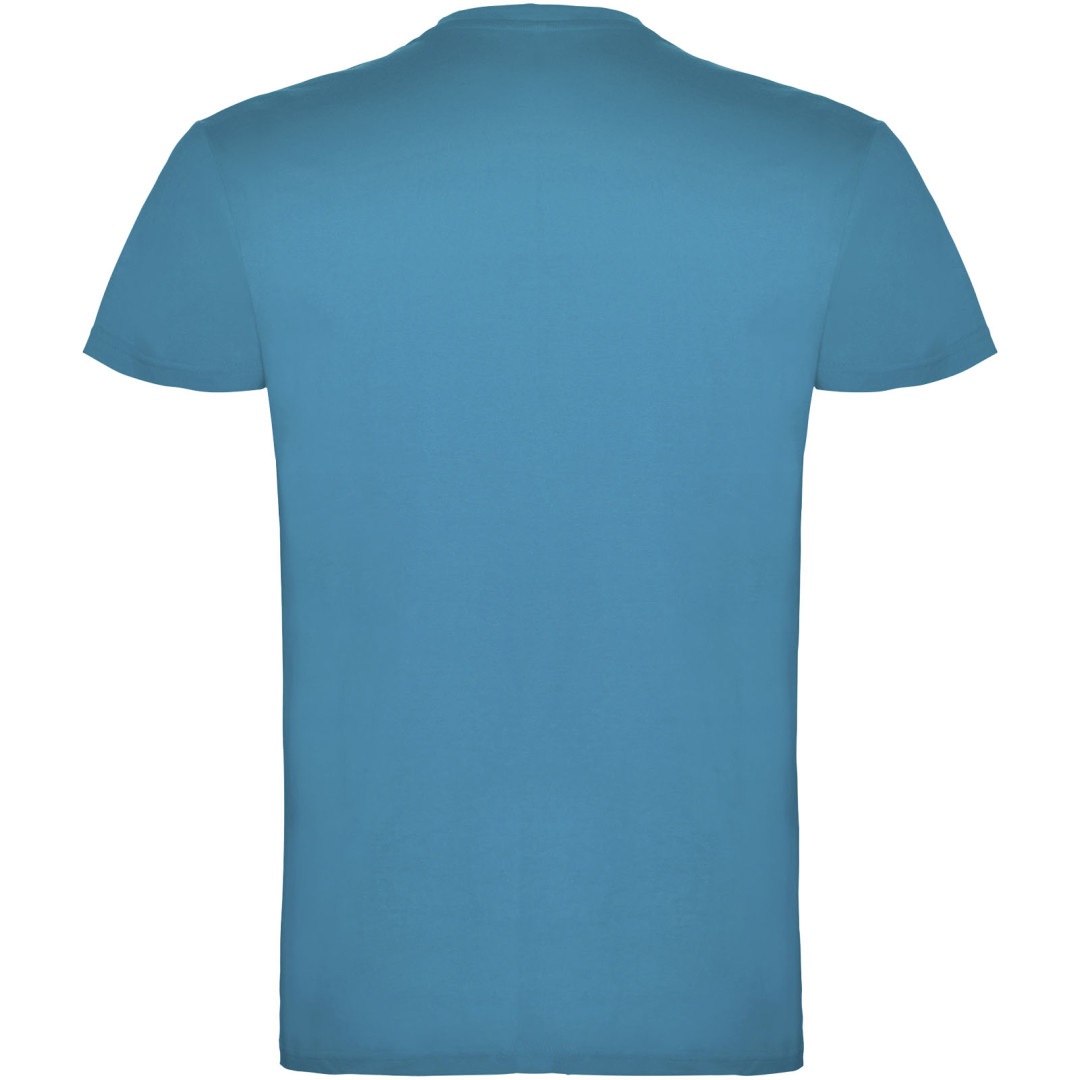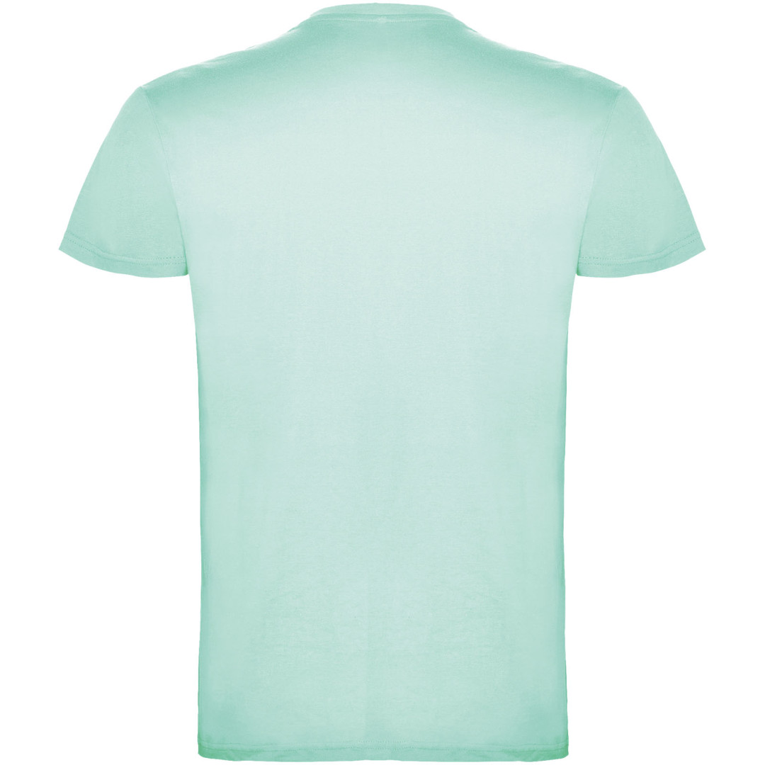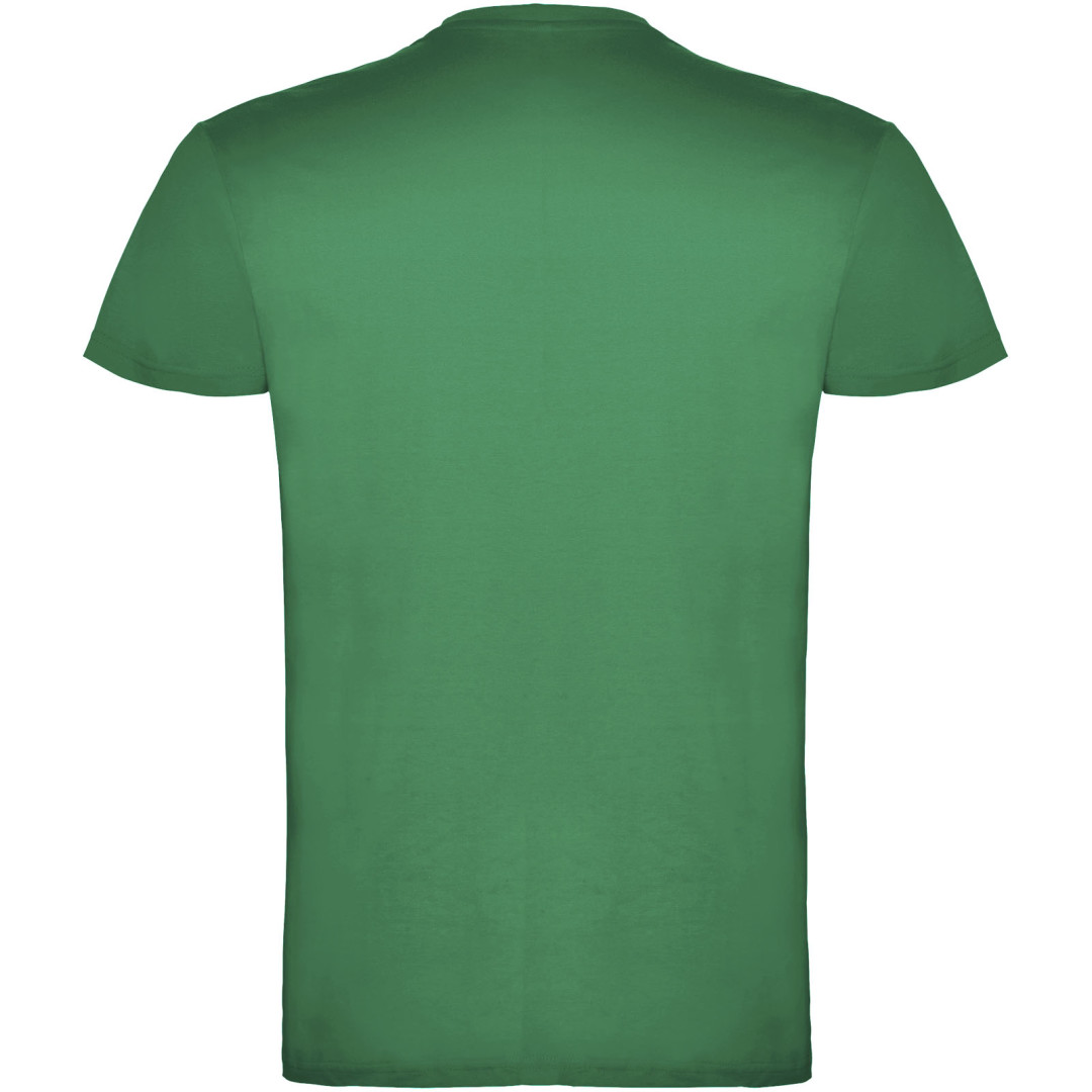 Tričko s krátkym rukávom a s dvojvrstvovým výstrihom z elastanu, vyrobené z trubicovej tkaniny, pre dospelých. Zosilnené kryté švy v golieri. Odnímateľný štítok. Model meria 190 cm a má na sebe veľkosť L. Jednolícny džersej 100% Bavlna, 155 g/m2.