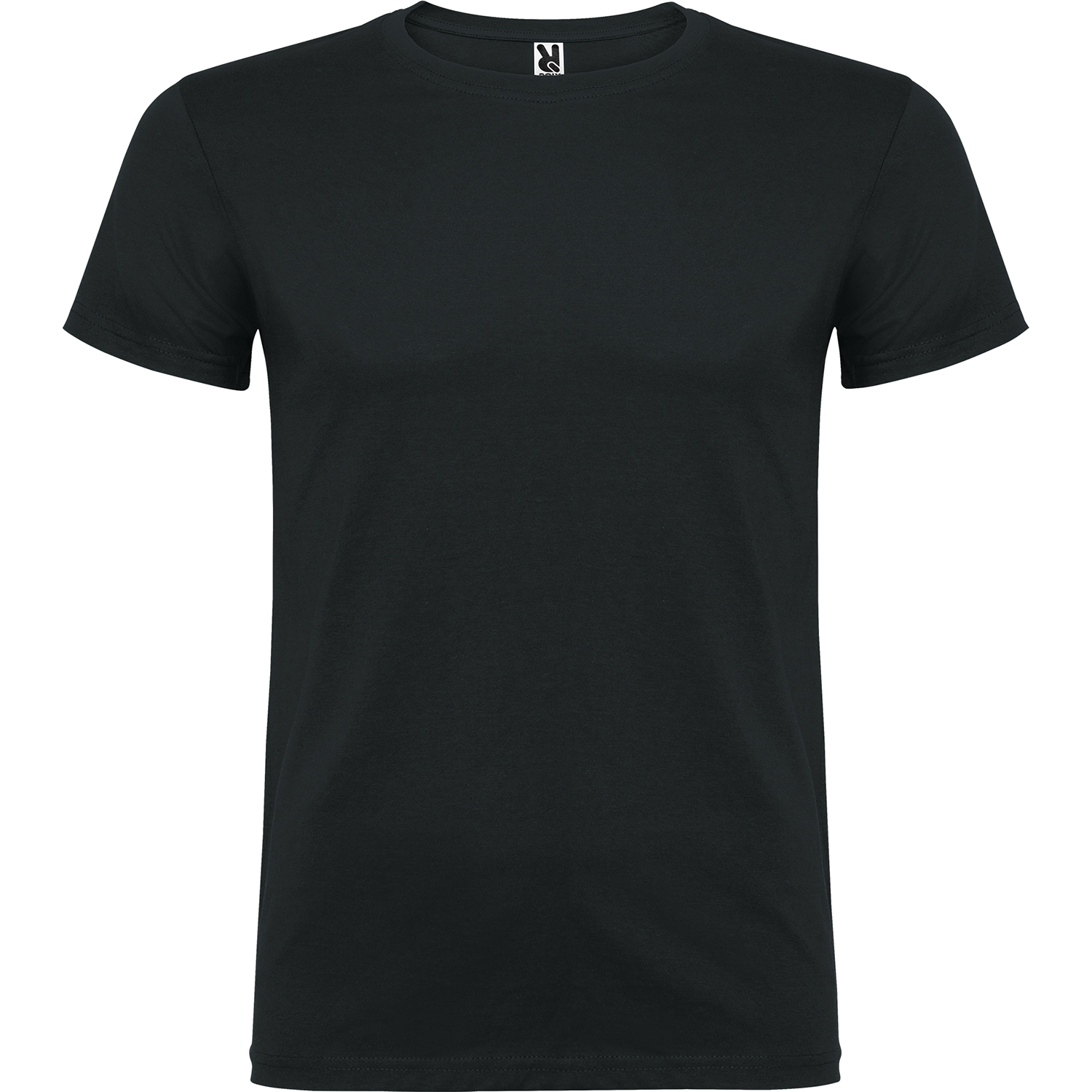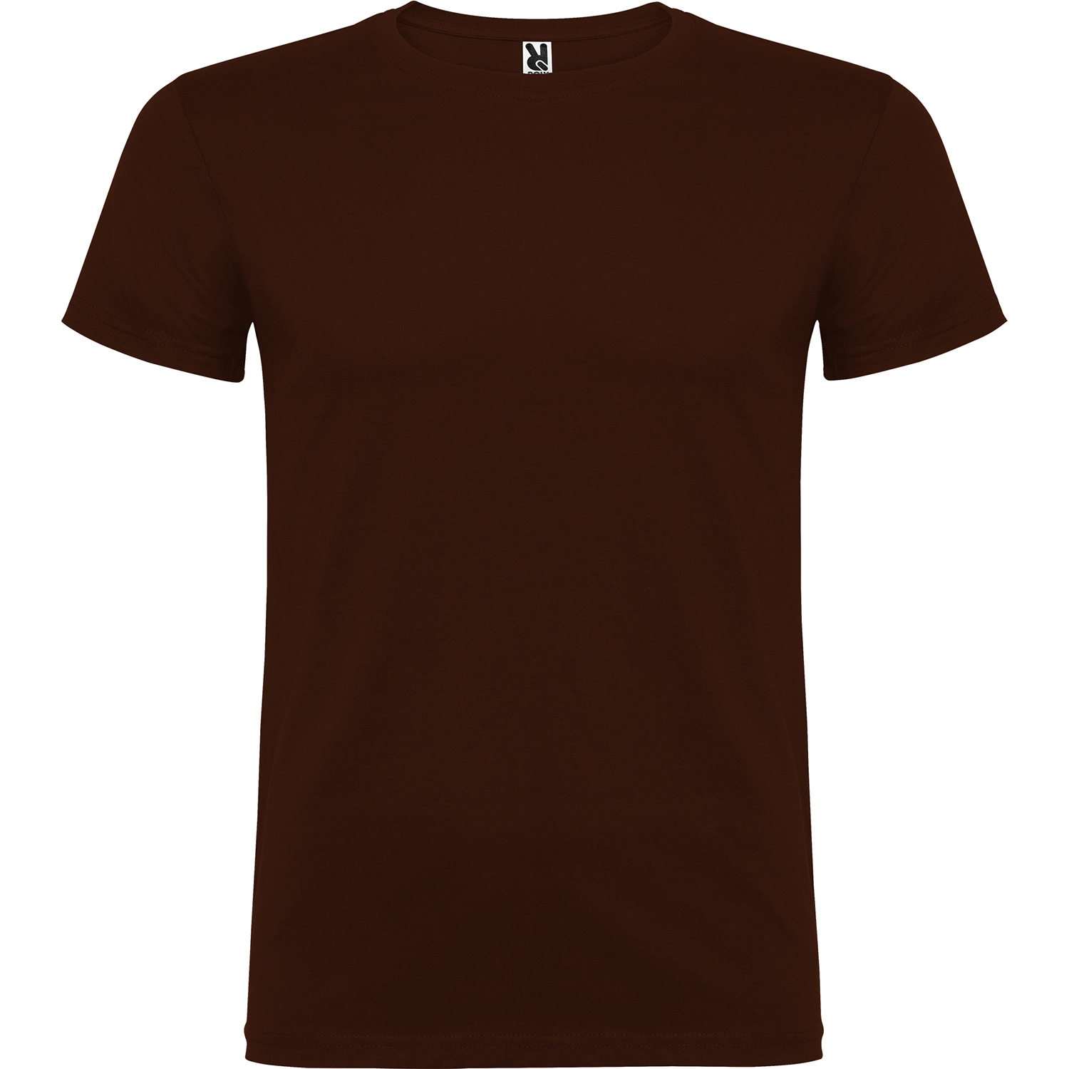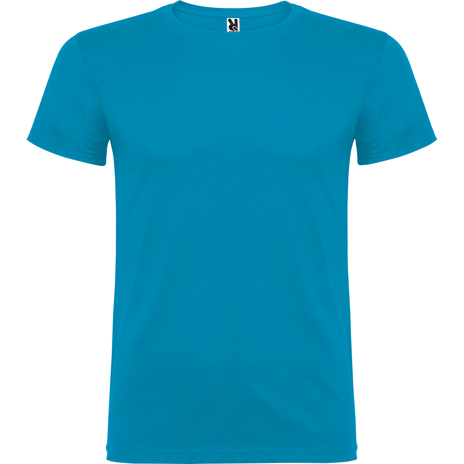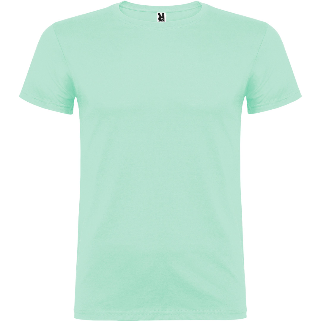 Tričko s krátkym rukávom a s dvojvrstvovým výstrihom z elastanu, vyrobené z trubicovej tkaniny, pre dospelých. Zosilnené kryté švy v golieri. Odnímateľný štítok. Model meria 190 cm a má na sebe veľkosť L. Jednolícny džersej 100% Bavlna, 155 g/m2.