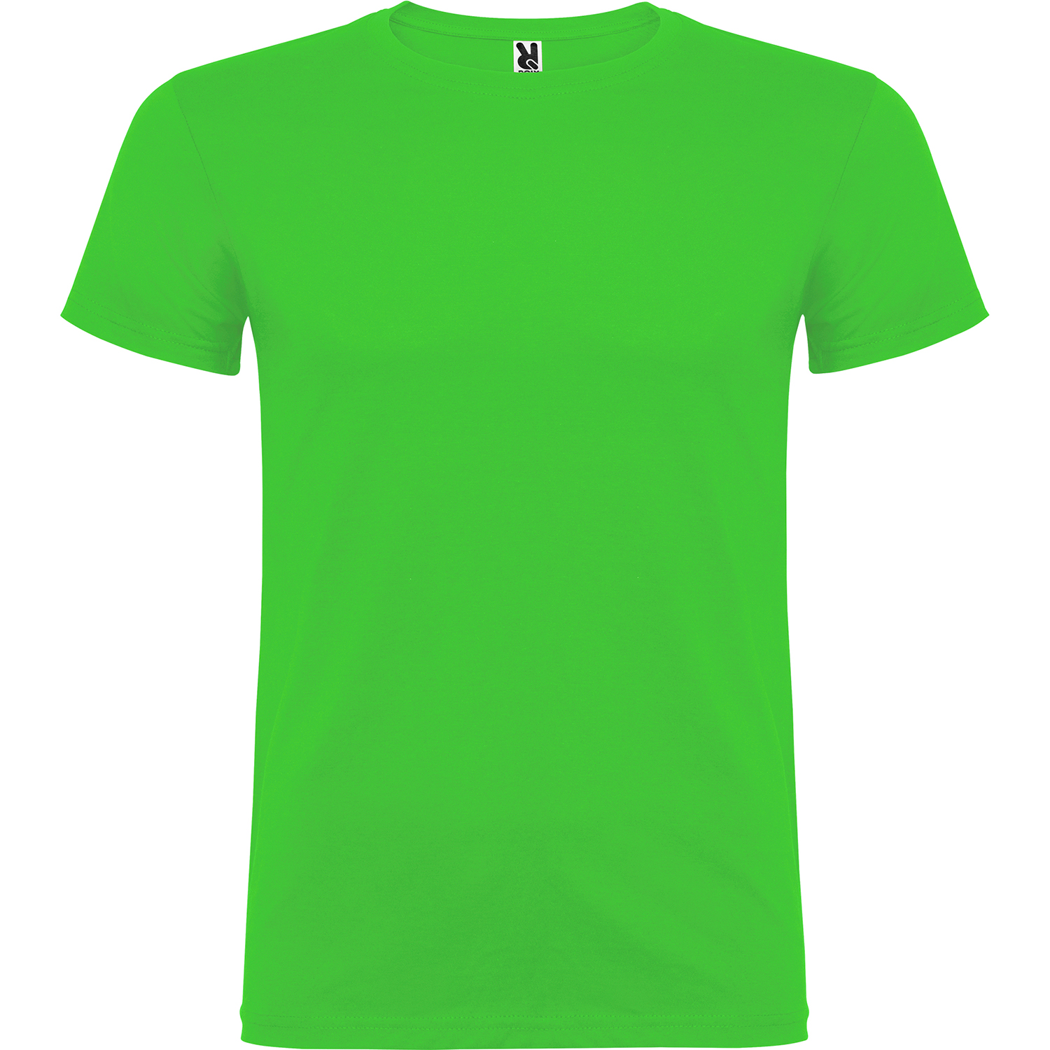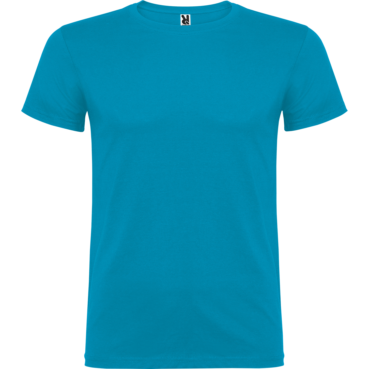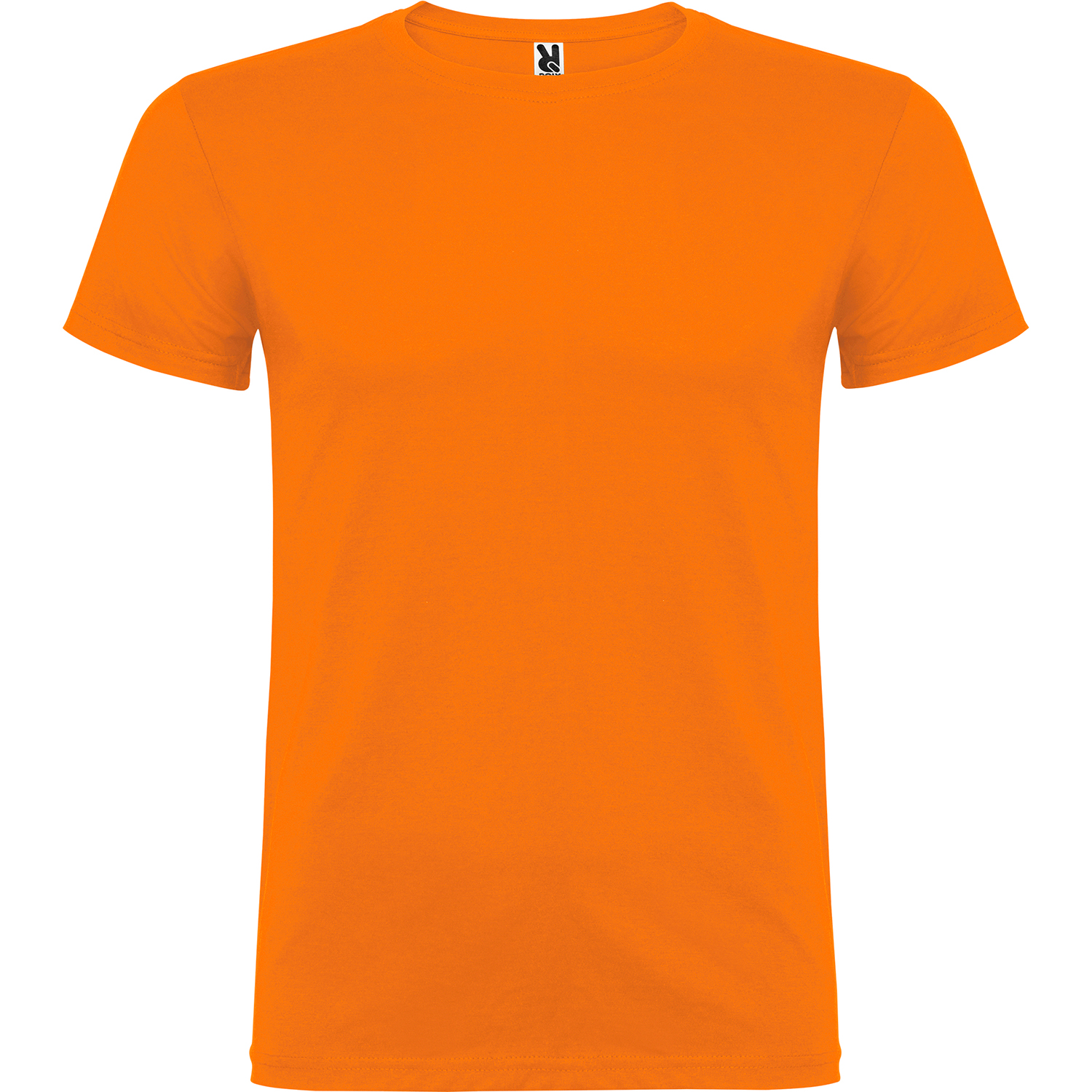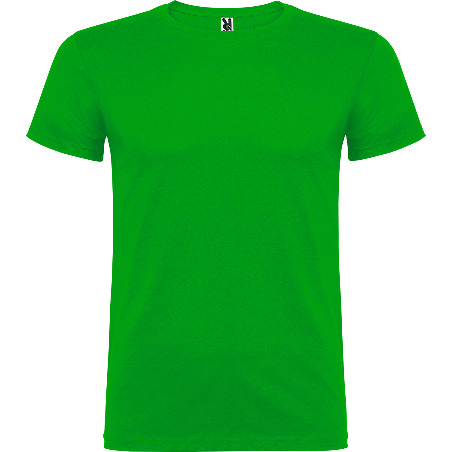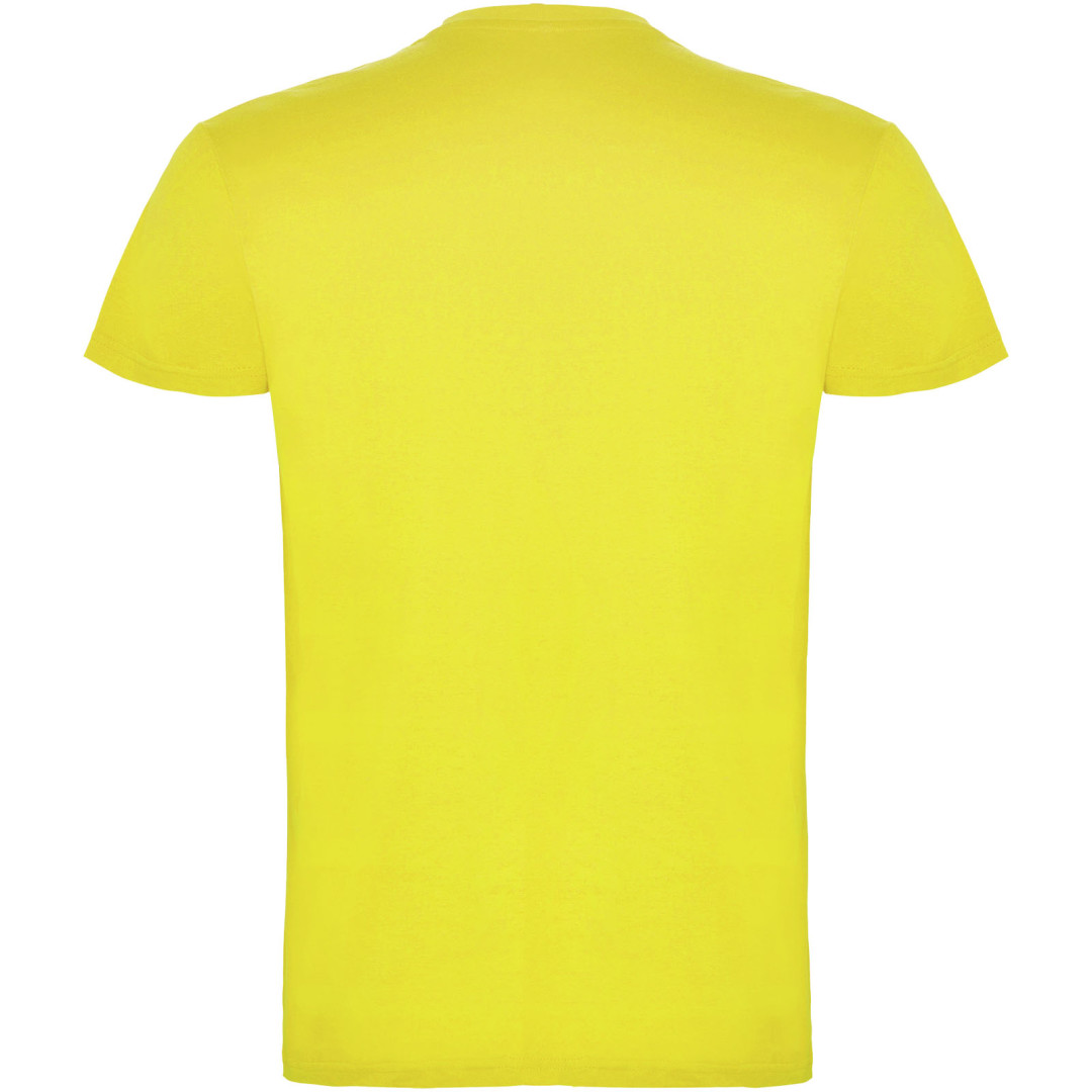 Tričko s krátkym rukávom a s dvojvrstvovým výstrihom z elastanu, vyrobené z trubicovej tkaniny, pre dospelých. Zosilnené kryté švy v golieri. Odnímateľný štítok. Model meria 190 cm a má na sebe veľkosť L. Jednolícny džersej 100% Bavlna, 155 g/m2.