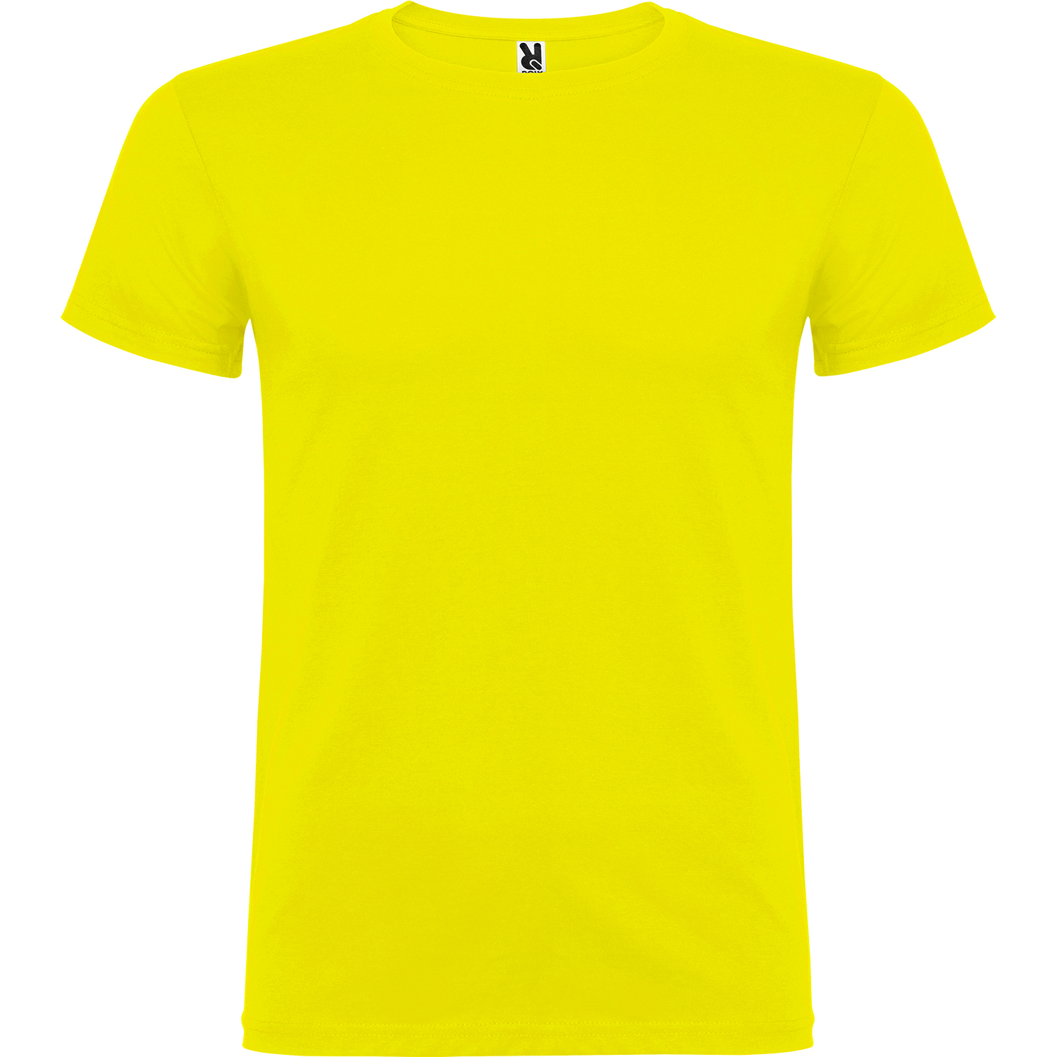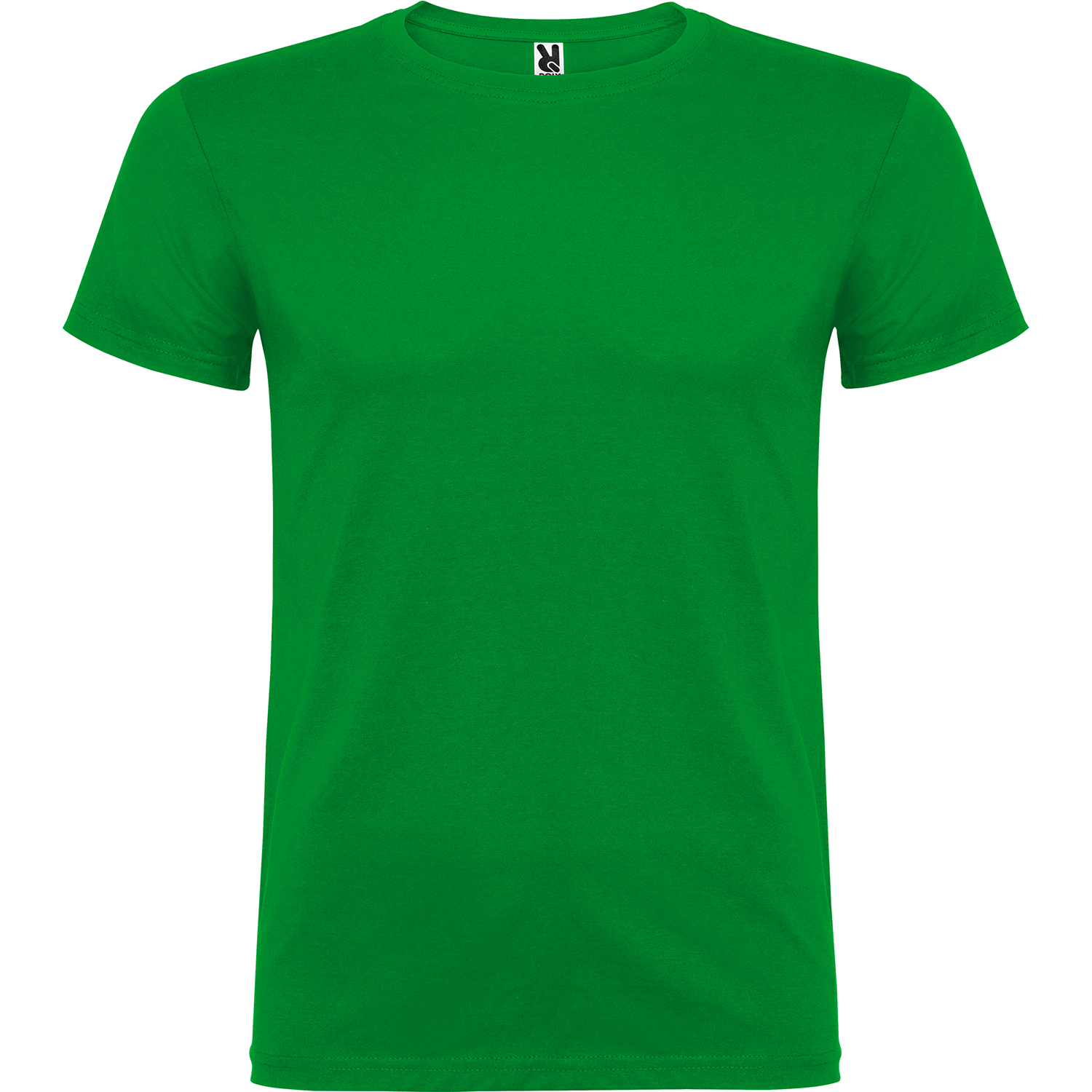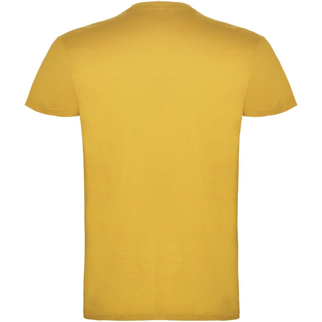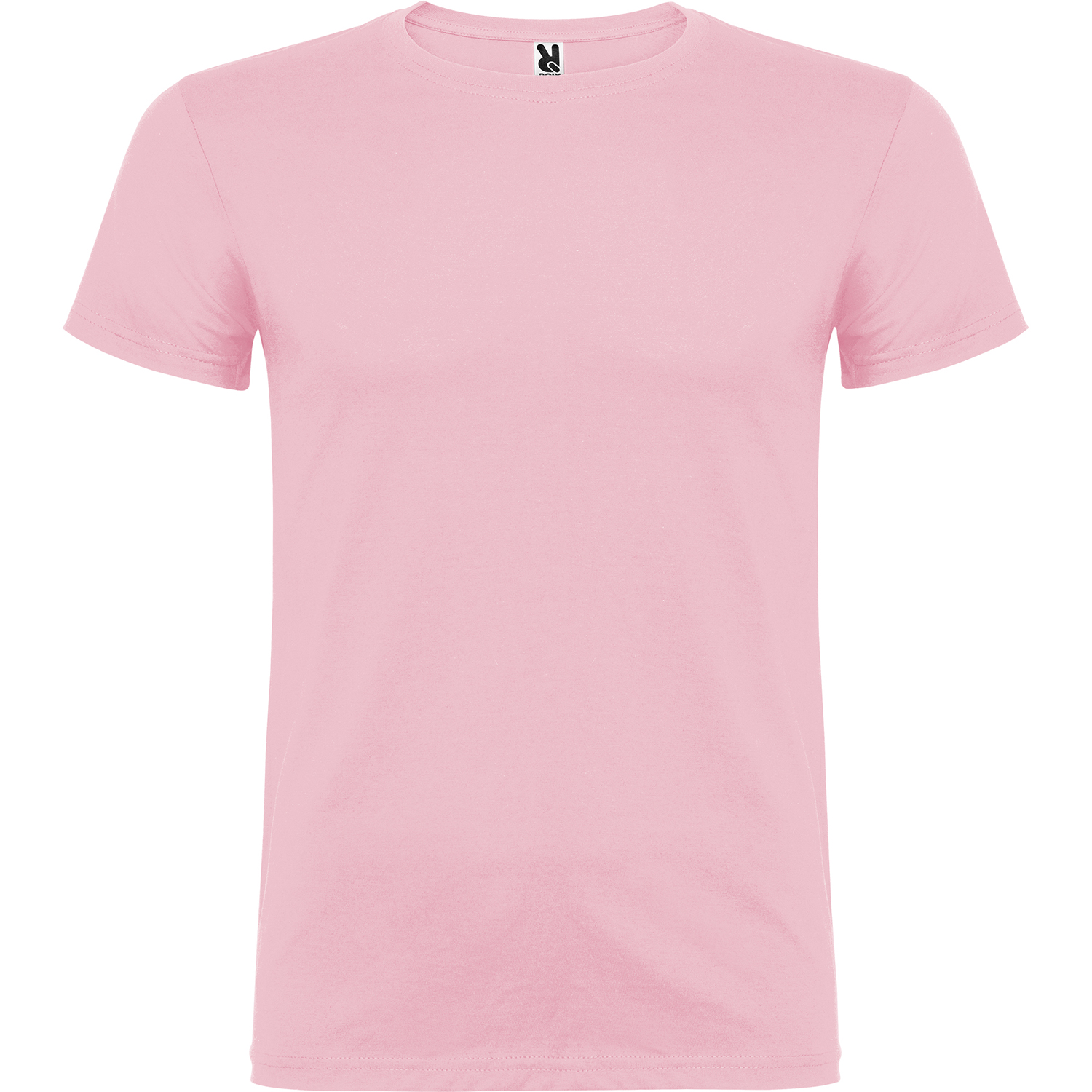 Tričko s krátkym rukávom a s dvojvrstvovým výstrihom z elastanu, vyrobené z trubicovej tkaniny, pre dospelých. Zosilnené kryté švy v golieri. Odnímateľný štítok. Model meria 190 cm a má na sebe veľkosť L. Jednolícny džersej 100% Bavlna, 155 g/m2.