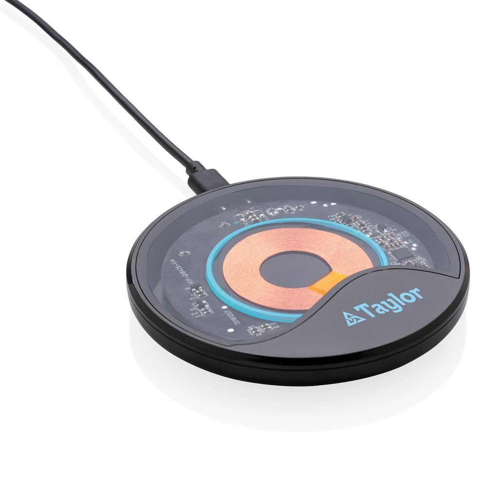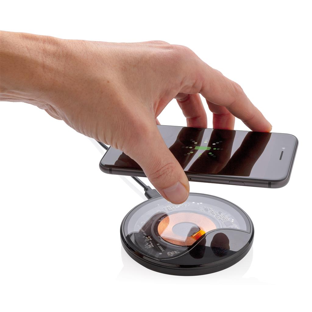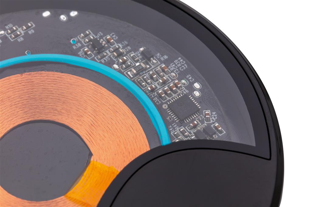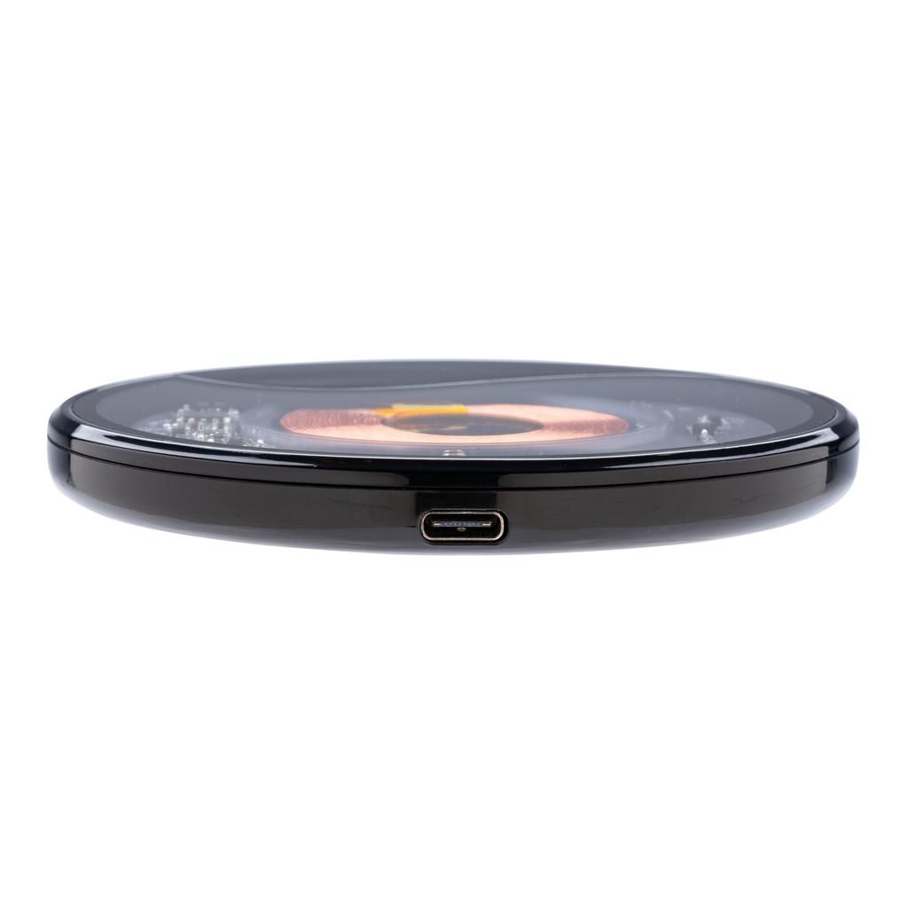 Výnimočný priehľadný dizajn odhaľujúce komponenty rady A +, vysoko kvalitné nabíjacie cievku a modré indikačné LED svetlo. Dvakrát rýchlejšie nabíjanie ako u bežných bezdrôtových nabíjačiek vďaka výkonu 10 W. Bezdrôtové nabíjanie je kompatibilný s najnovšími generáciami telefónov s Android a iPhone radu 8 a vyššie. Vstup: 5V / 2A, bezdrôtový výstup: 9V / 1.1 10W. Vrátane 1,5m dlhého USB-USB typ C kábla pre rýchle nabíjanie.