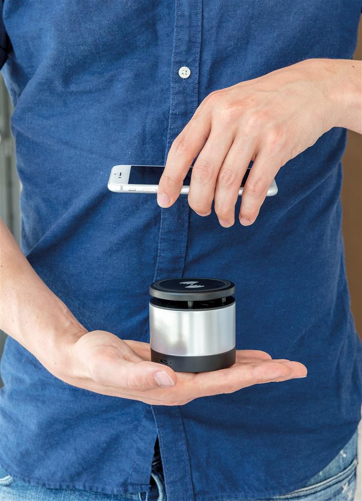 Počúvajte vašu obľúbenú hudbu a súčasne vaše dalšie zariadenie dobíjajte – oboje, ako inak, než bezdrôtovo! Jednoducho pripojte reproduktor k elektrickému zdroju a telefón položte. Ten se potom automaticky začne dobíjať. Batéria s kapacitou 400 mAh umožňuje prehrávať hudbu po dobu až 3 hodin. BT 4.2 zaisťuje spoľahlivé spojenie až na vzdialenosť 10m. Nabíjačka s výkonom 5W, reproduktor 3W. Pri používání oboch funkcií vždy zariadenie pomocou pribaleného 1,5m dlhého micro USB kábla pripojte k elektrickému zdroju. Kompatibilné so všetkými telefónmi podporujúcimi QI, ako sú najnovšie generácie Android, iPhone 8, 8S a X. Vstup 5V/1A, bezdrôtový výstup: 5V/1A 5W. 1 batéria typu Li-poly súčasťou balenia.