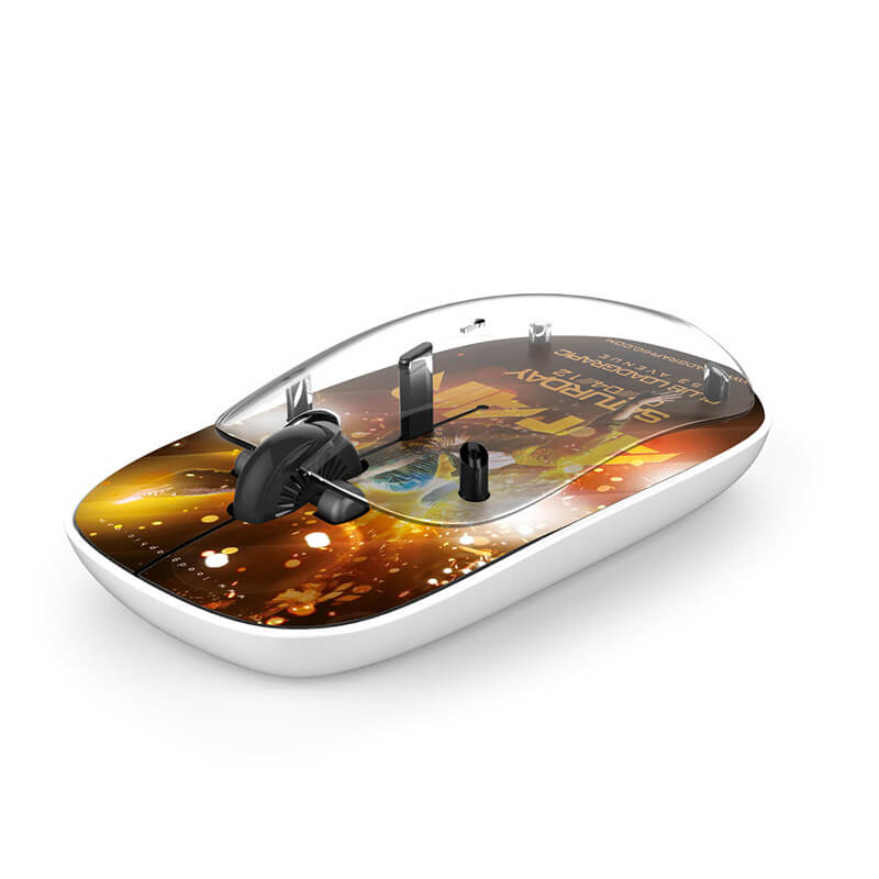 Potrebujete presnú a zároveň elegantnú kancelársku myš pre každodennú prácu aj cestovanie? Táto nová bezdrôtová myš je skvelým variantom. Moderný design budí dojem hneď na prvý pohľad. Bezdrôtová myš je vyrobená z plastového materiálu a vďaka svojim skladným rozmerom sa pohodlne zmestí aj do tašky. Aby bola bezdrôtová myš ešte zaujímavejšia a budila viac ohlasov, môžete ju nechať opatriť farebnou CMYK potlačou po celej viditeľnej ploche. Jej unikátnosť tak spočíva aj v kombinácii celoplošnej potlače a priehľadnej ergonomickou časťou, ktorá zaisťuje pohodlné držanie pri práci.
