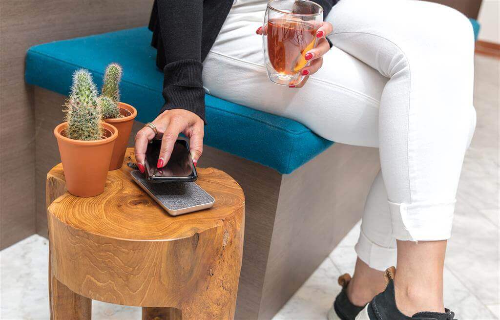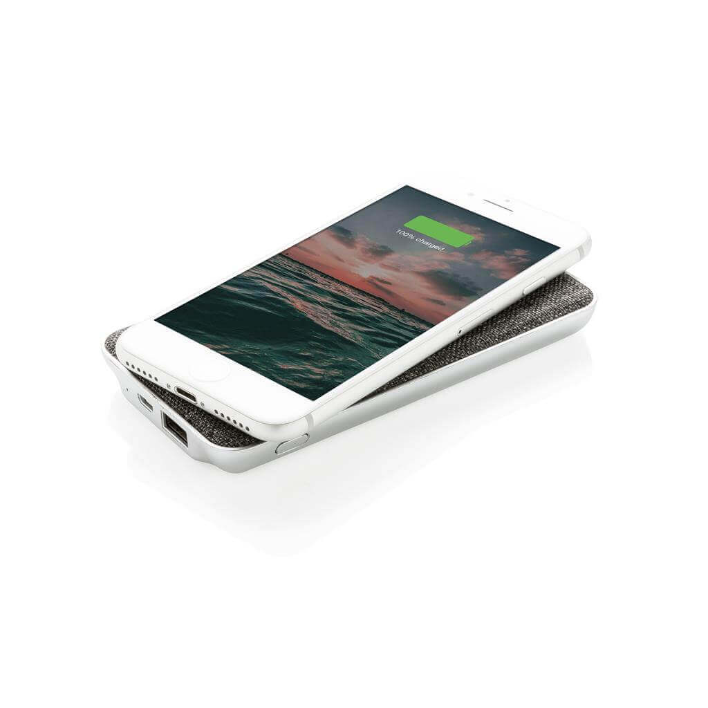 Už žiadne káble! Telefón iba položte a nabíjajte. Praktická vychytávka v trendy textilnom dizajne, s ktorou zaručene vyniknete! Kapacita 5 000 mAh plne nabije vaše zariadenie