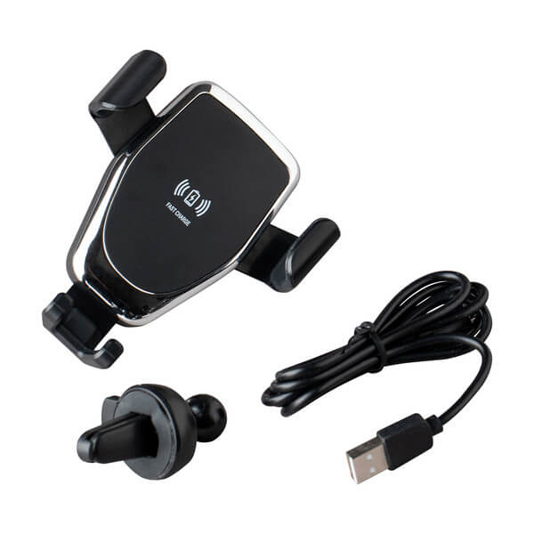 Bezdrôtová indukčná nabíjačka s držiakom do auta na prichytenie na vetrák v aute. Dá sa ovládať jednou rukou vďaka mechanizmu ktorý prichytí telefón do ramien držiaka jeho vlastnou váhou. Frekvencia: 100 - 205 kHz. Príkon: 5 V-9 V / 1.5 A. Výkon 5 V/1 A. Obsahuje USB kábel.
