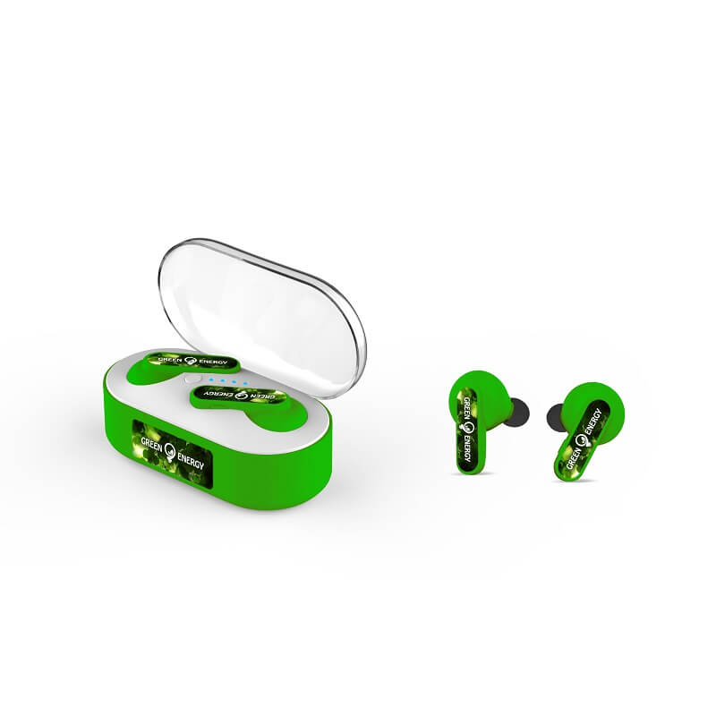 Prepracované a originálne tvarované bezdrôtové TWS Bluetooth slúchadlá sa vzájomne prepoja pre vytvorenie bezchybného stereo zvuku. Technológia TWS (True Wireless Stereo) umožňuje bezdrôtové spojenie slúchadiel, ktoré sa synchronizujú pre prehrávanie stereo zvuku. S týmito slúchadlami si vychutná hudbu každý. Súčasťou slúchadiel je elegantná dobíjacia krabička. Vďaka miniatúrnej veľkosti sú ideálne pre každodenné použitie a cestovanie. Predstavujú budúcnosť pre počúvanie hudby. Pri objednaní od 50 kusov možno zvoliť vlastné Pantone farbu slúchadiel aj krabičky. Ideálny ako reklamný darček pre každého.