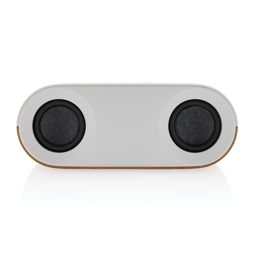 Bezdrôtový reproduktor s výkonom 10 W vyrobený z RCS recyklovaného ABS a 100% FSC® korku. RCS (Recycled Claim Standard) je globálny štandard, ktorý umožňuje overiť použitie recyklovaného materiálu v produkte naprieč celým dodávateľským reťazcom. Celkový podiel recyklátu podľa váhy produktu: 25 %. 1 200 mAh batéria umožňuje počúvanie po dobu až 10 hodín. BT 5.3 pre čisté bezdrôtové pripojenie na vzdialenosť až 10m. Mikrofón pre možnosť telefonovania. Vrátane nabíjacieho kábla z RCS recyklovaného TPE. Balené v FSC® darčekovej krabičke. Produkt aj príslušenstvo kompletne bez PVC. 1 batérií typu 18650 súčasťou balenia.