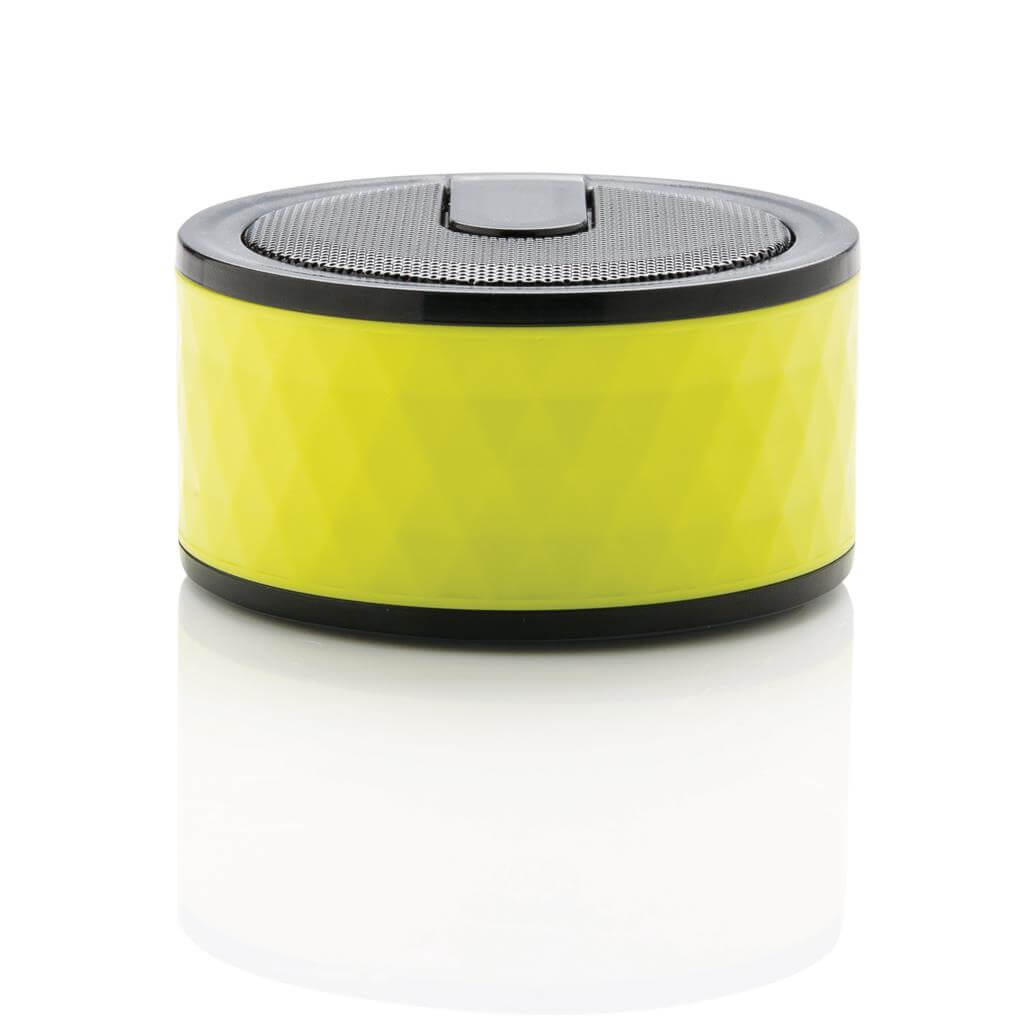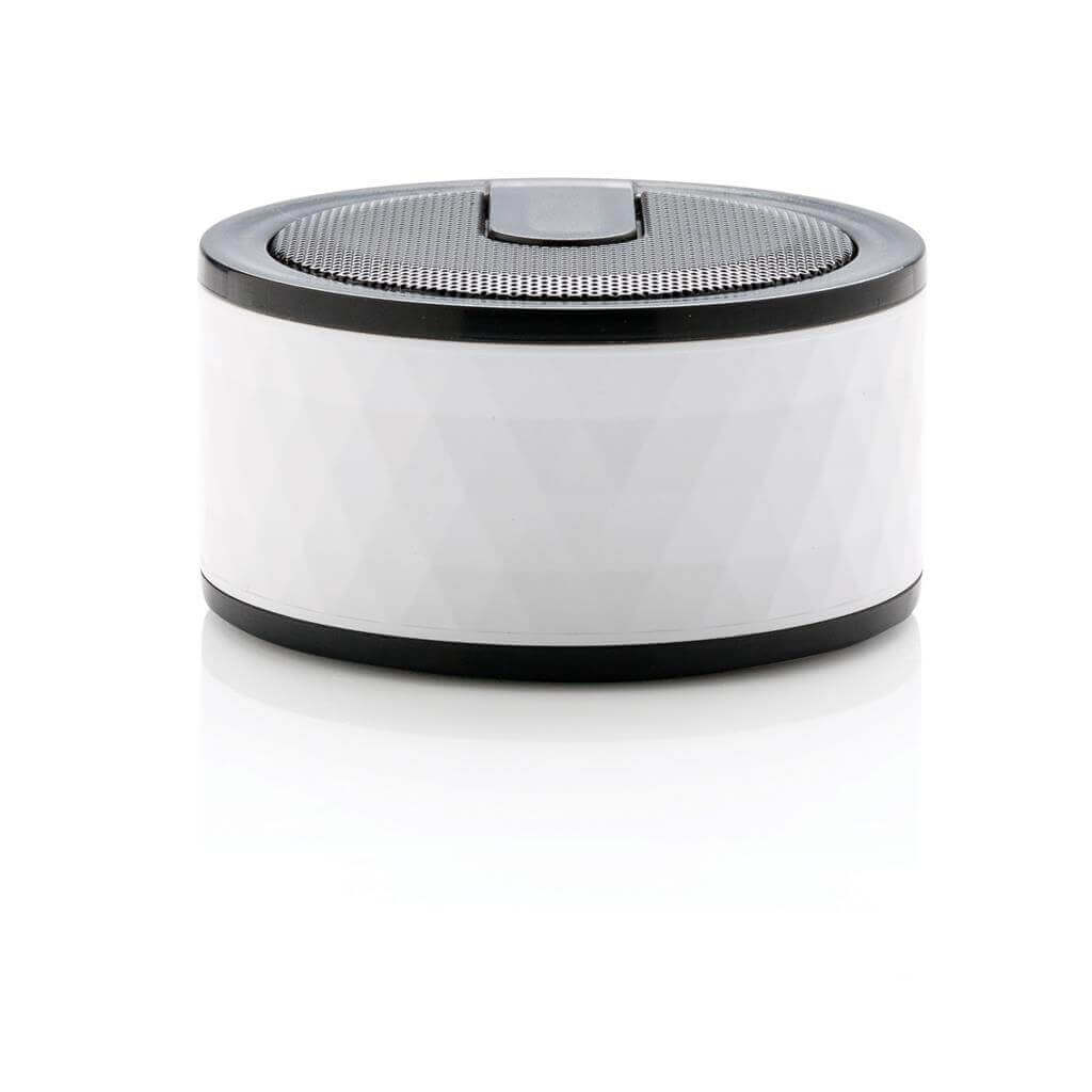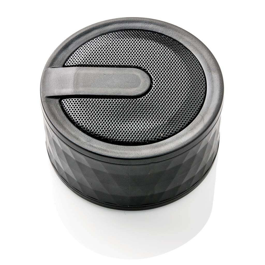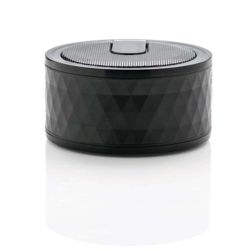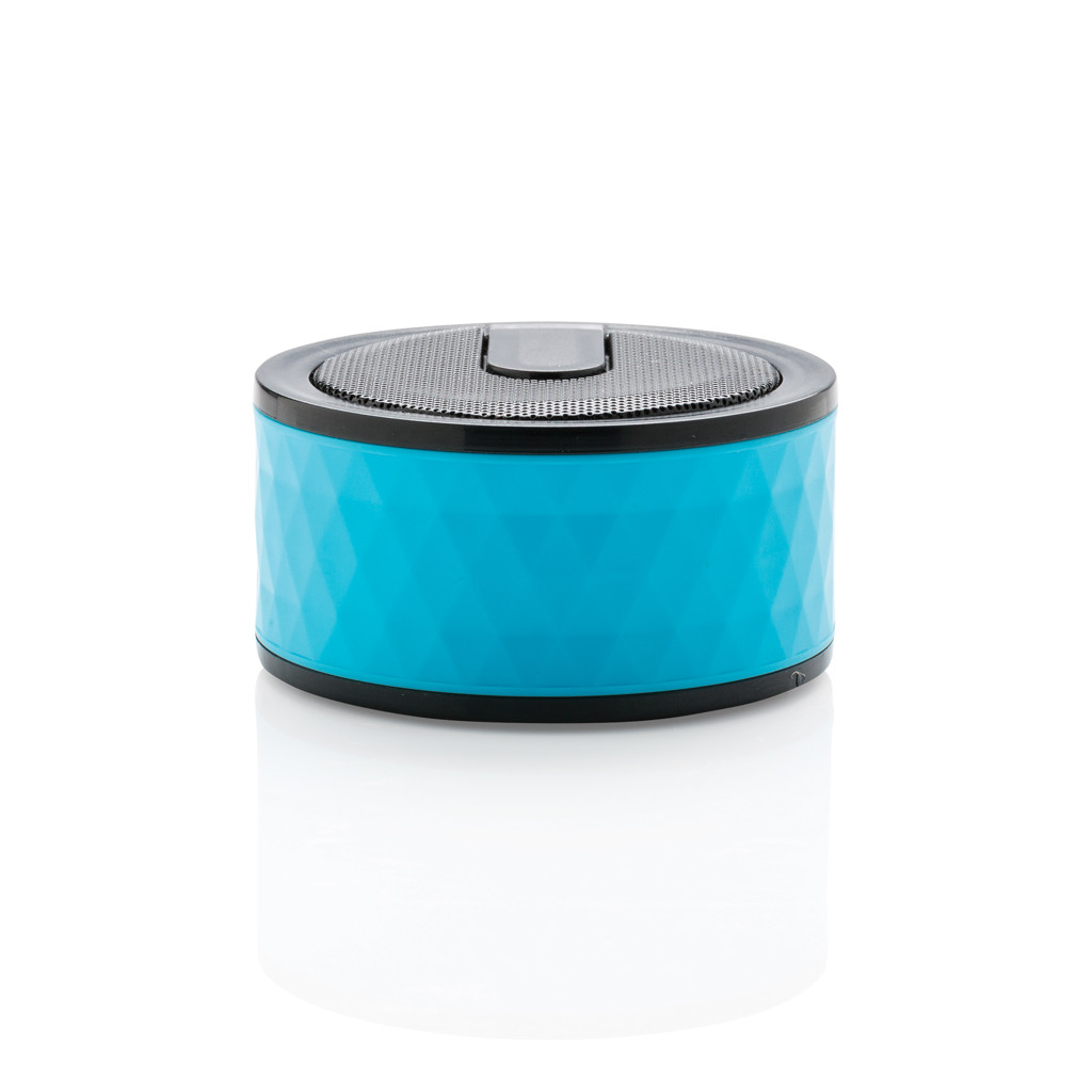 Trendy 3W bluetooth reproduktor s ABS telom s geometrickým vzorom. Horná mriežka má vyhradenú oblasť pre optimálnu veľkosť loga. Na spodnej časťi sa nachádza silikonový prúžok pre tú najlepšiu kvalitu zvuku a stabilitu. 300mAh akumulátor vám umožňuje prehrávanie obľúbenej hudby po dobu až 2 hodín a možno ho úplne nabiť za 1 hodinu. Prevádzková vzdialenosť až 10 metrov. Bluetooth 4.2. 1 batéria typu Li-ion súčasťou balenia.