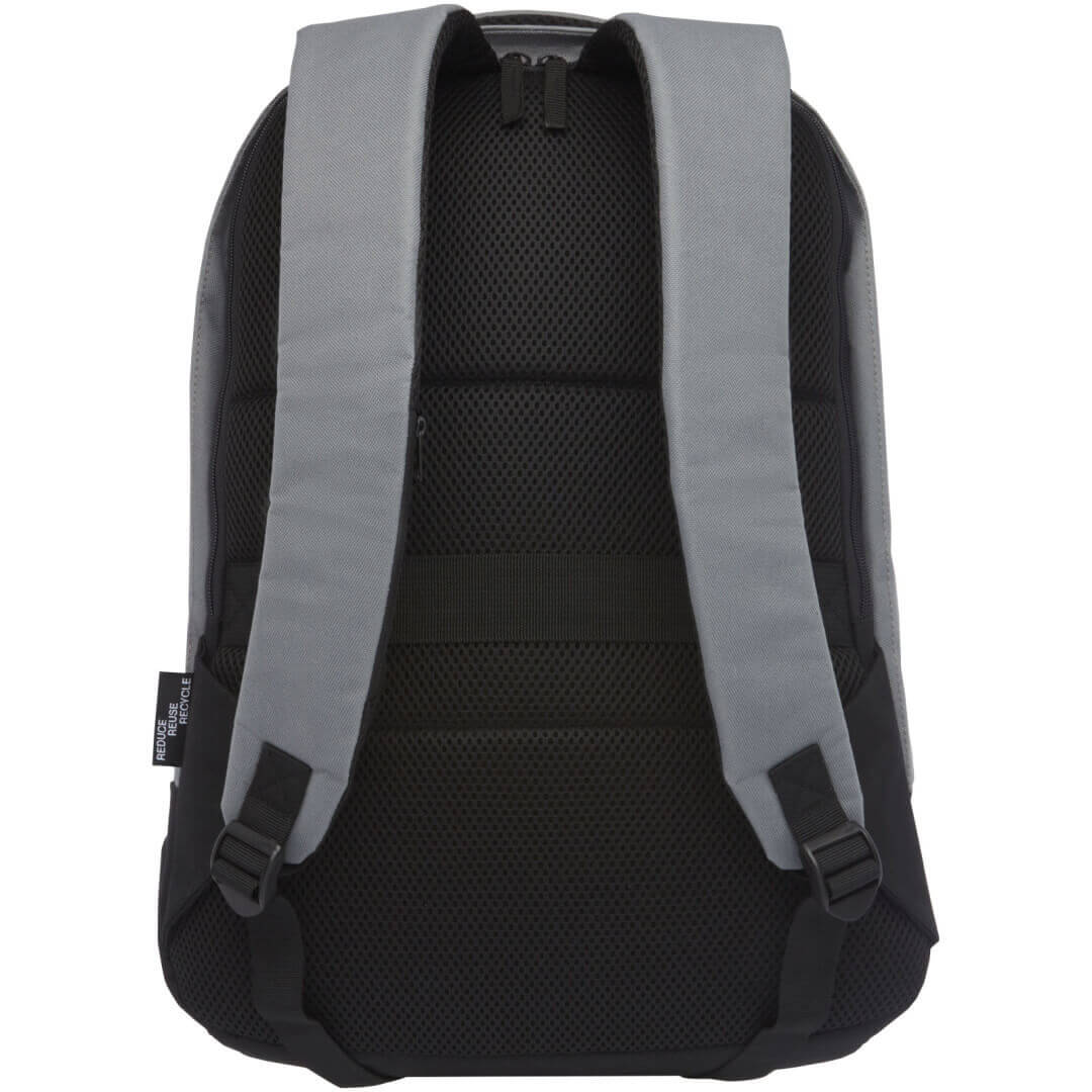 Má otvorenú hlavnú priehradku s organizérom, polstrovaný obal na 15" notebook a dve vrecká blokujúce RFID. USB vstup na pravej strane pre ľahké pripojenie a nabíjanie zariadenia zvnútra. Súčasťou batohu sú polstrované ramenné popruhy, popruh cez pravé rameno, skryté vrecko na zips, ucho a popruh na madlo kufra. Pri výrobe tohto batohu bolo recyklovaných približne 15 plastových fliaš.