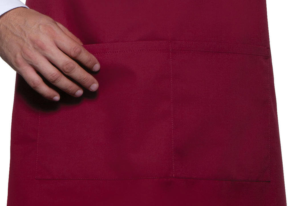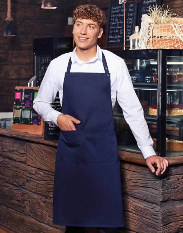215 g/m² 65% polyester, 35% bavlna, neťahavá, vysoko kvalitná pásky z rovnakej látky ako zástera so zosilnenými miestami páska okolo krku, nastaviteľná dĺžka na 3 cvočky vhodná pre priemyselné práčovne možno prať do 95 ° C jednoduchá na údržbu, odolná farba rozmery: 75 x 95 cm