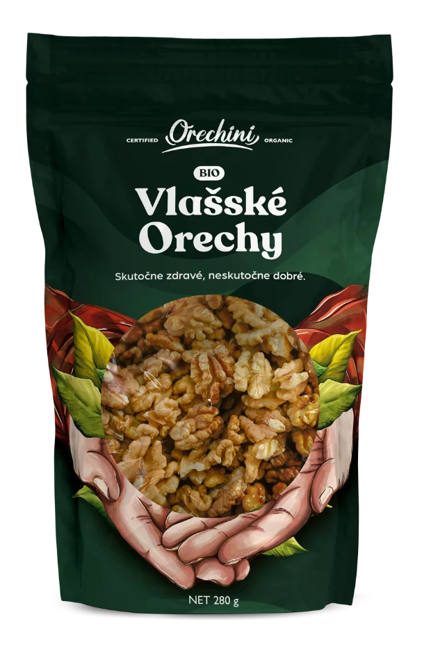 BIO vlašské orechy Orechini sú ideálnou voľbou na zdravé maškrtenie i pečenie. 60 % balenia tvoria celé polovice – krásne sa hodia na zdobenie dezertov, menšie kúsky využijete do granoly, kaše alebo šalátov. Pestované a balené priamo na našej farme, bohaté na vitamín B, omega-3 a omega-6. Podporujú pamäť, srdce a pomáhajú znižovať cholesterol. Uchovávané v chladenom sklade, 100 % slovenský produkt v praktickom doypack sáčku. 280 g