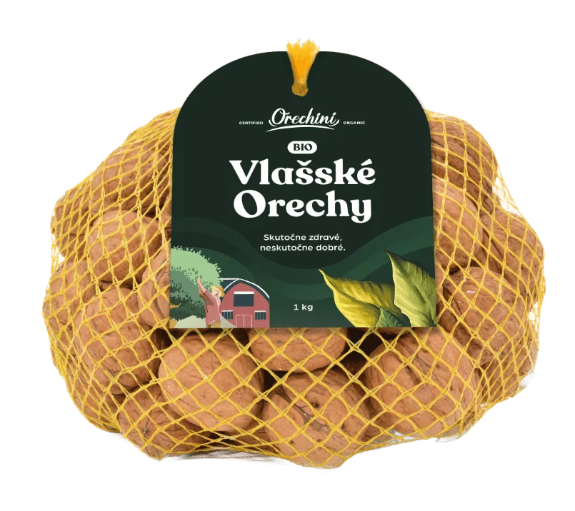 BIO vlašské orechy priamo z farmy Orechini – pestované, kontrolované a balené na Slovensku pre maximálnu čerstvosť a kvalitu. Bohaté na vitamín B, omega-3 a omega-6 mastné kyseliny, podporujú pamäť a prispievajú k znižovaniu cholesterolu. Vyznačujú sa maslovou chuťou a zlatistými jadrami. Uchovávané v chladenom sklade, balené v znovuzatvárateľnom sáčku. 100% vlašské orechy, slovenský pôvod. Váha: 1 000 g