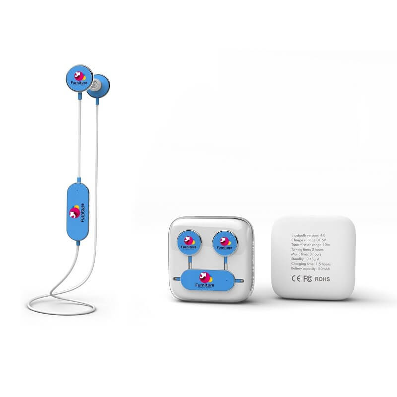 Bluetooth slúchadlá - štuple, vhodné pre CMYK potlač. Slúchadlá - štuple - s možnosťou CMYK potlače. Kvalitné in-ear slúchadlá s handsfree mikrofónom, od 100 ks vo vlastnej farbe vrátane kábla. Malé skladné slúchadlá pre každú príležitosť. Prenos signálu cez rozhranie Bluetooth zvyšuje komfort počúvania – ovládanie prehrávača a hlasitosti je umiestnené na prepojovacom kábli – takže telefón či prehrávač nemusíte vyťahovať z vrecka či tašky.