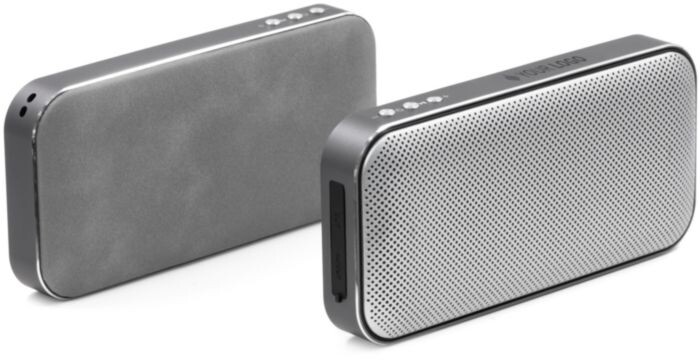 Kompaktný bezdrôtový reproduktor a powerbanka navrhnutá na pohodlné prenášanie. Je vybavená 10W systémom Ambient Harmonics™ s duálnymi meničmi pre čistý zvuk a vstavanou 5 000 mAh powerbankou s rýchlym nabíjaním až 20 W (kompatibilný s PD3.0 a QC3.0). Súčasťou je elegantné hliníkové tlačidlá na pozastavenie, prehrávanie a ovládanie hlasitosti. Je vybavená Bluetooth a USB-C pripojením. Ideálne pre profesionálov na cestách. Rozmery: 15,7 x 7,6 x 3 cm.