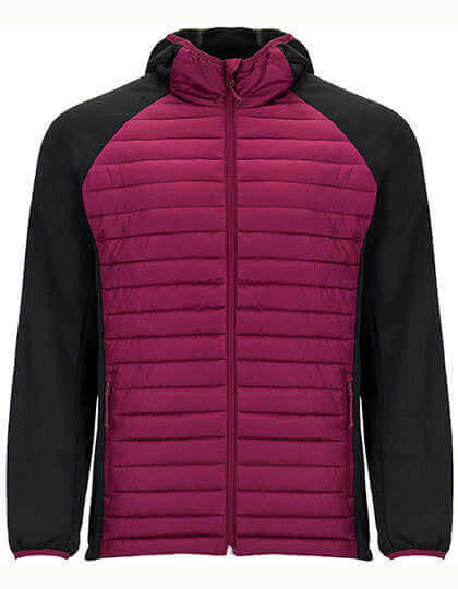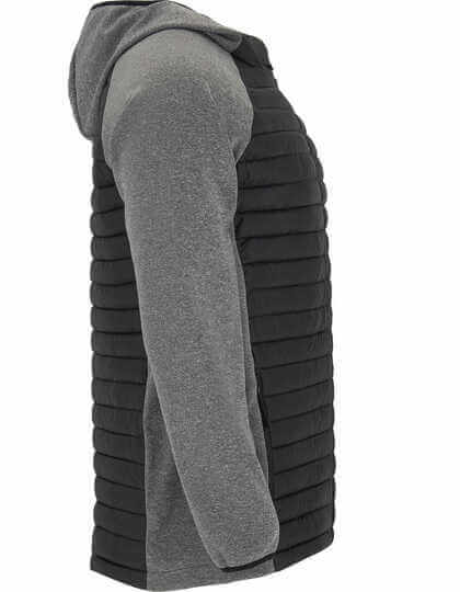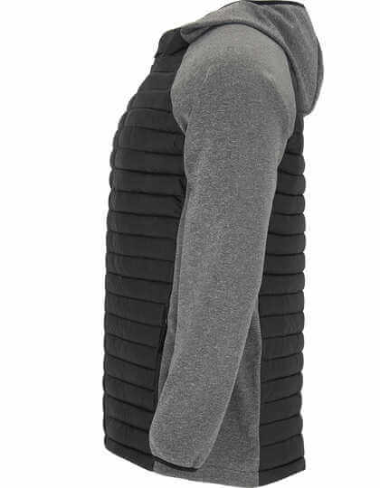 Predná a zadná časť: 100% polyester; podšívka: 100 % polyester, rukávy: 100 % polyesterový úplet, 290 g/m² | Neodnímateľná kapucňa | Raglánový štýl | Softshellový materiál na rukávoch, bokoch a kapucni | Ľahký prešívaný materiál vpredu aj vzadu | Jednofarebný zips s ochranou brady a sťahovákom | Dve predné vrecká na zips | Elastický okraj v zladenej farbe na golieri, manžetách a spodnom opasku | Odtrhávací štítok | Vetruvzdorné