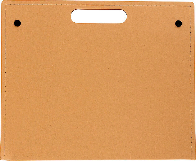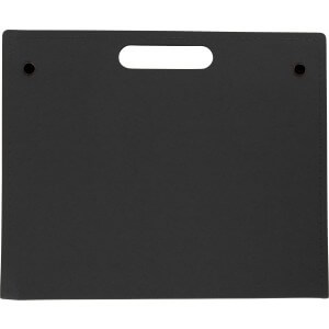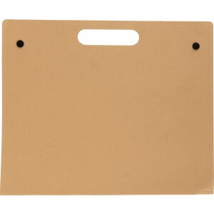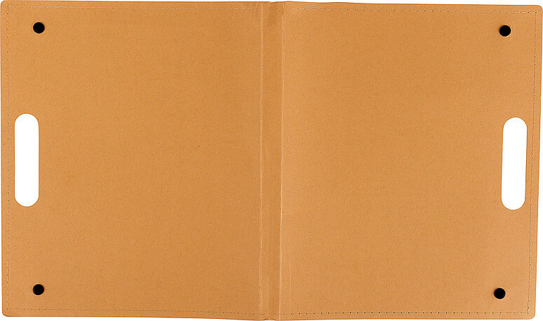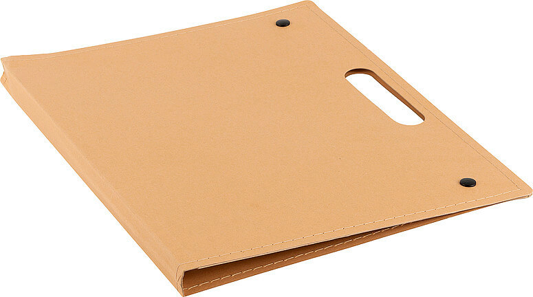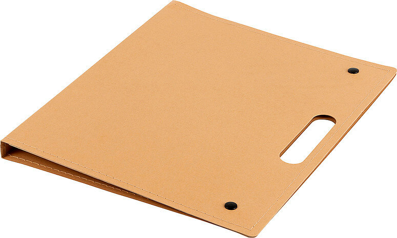 Kartónová zložka na písanie s 20 listovým poznámkovým blokom (približne A4), kartónovým perom s čiernym atramentom a samolepiacimi poznámkami v 4 farbách, každá s farbou 25 listov. Priečinok má integrovanú rukoväť