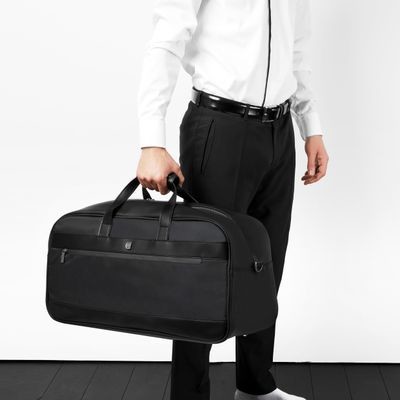 Minimálna, elegantná a decentná cestovná kolekcia Bond kombinuje súčasný nylon s luxusnou textúrou vegánskej kože pre výsledok, ktorý sa ľahko nosí a hodí ku každému outfitu. Tašky sú podpísané matnou verziou našej CRR dosky. Všetky detaily sú starostlivo premyslené: od zipsov s vyrytým logom až po nadrozmerný, ale jemný podpis CERRUTI 1881 vyrazený na boku tašky. Táto položka je tiež veľmi funkčná: potulná a ľahko organizovateľná. Je k dispozícii v 2 farebných verziách: Celočierna alebo zmiešaná hnedá a sivá pre rozhodne elegantný výsledok.
