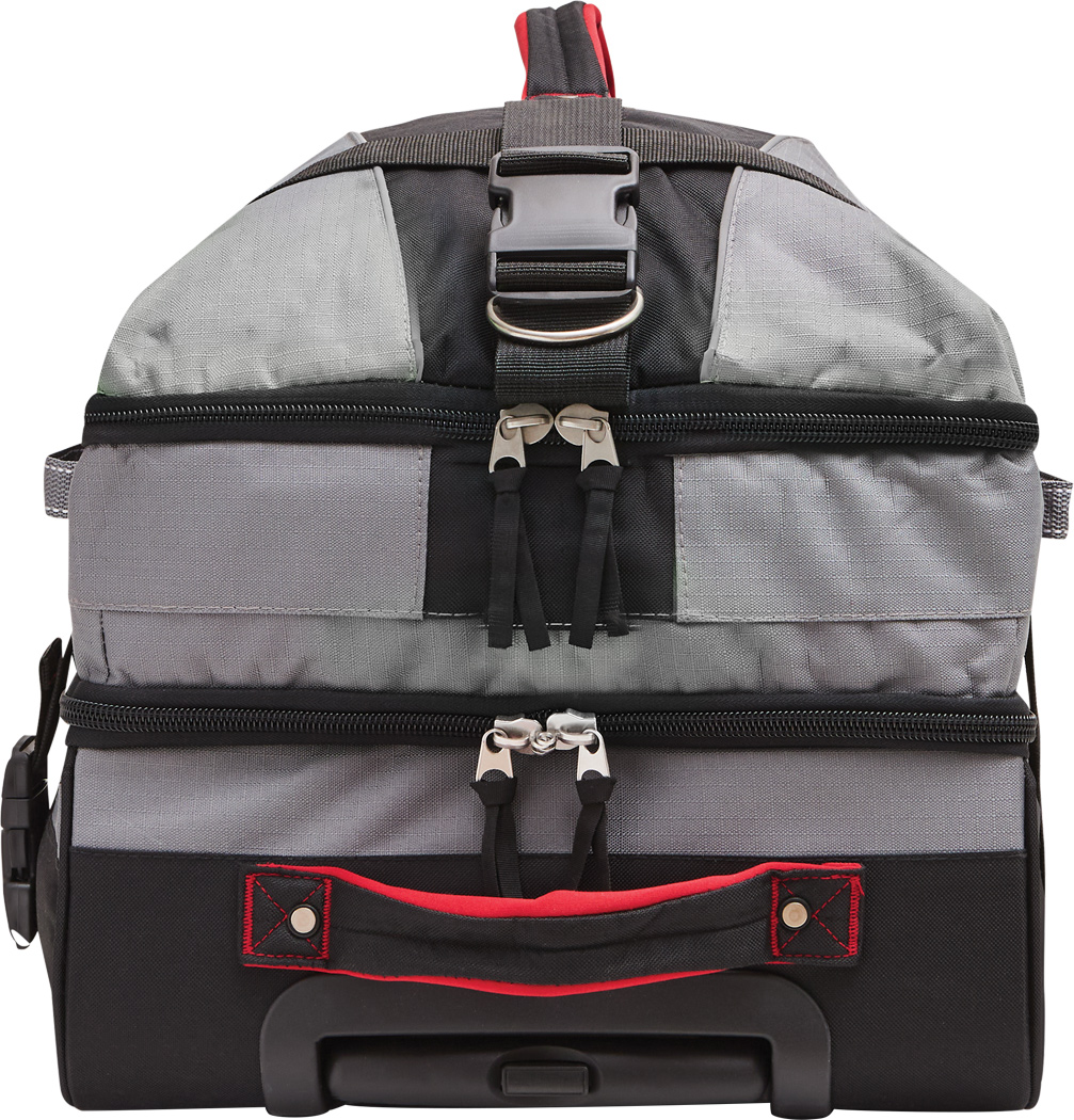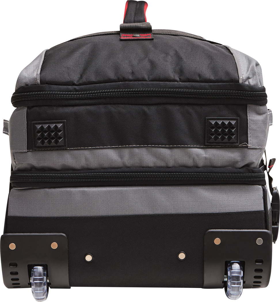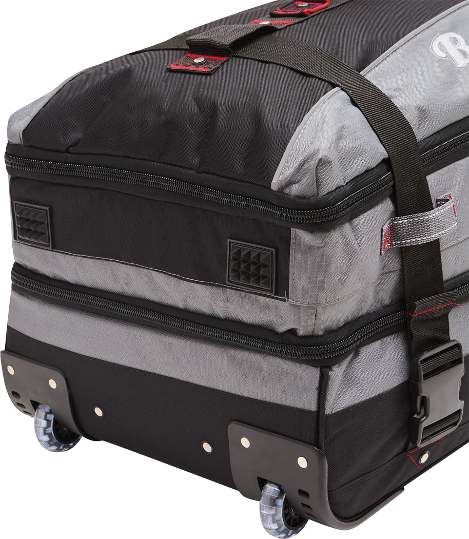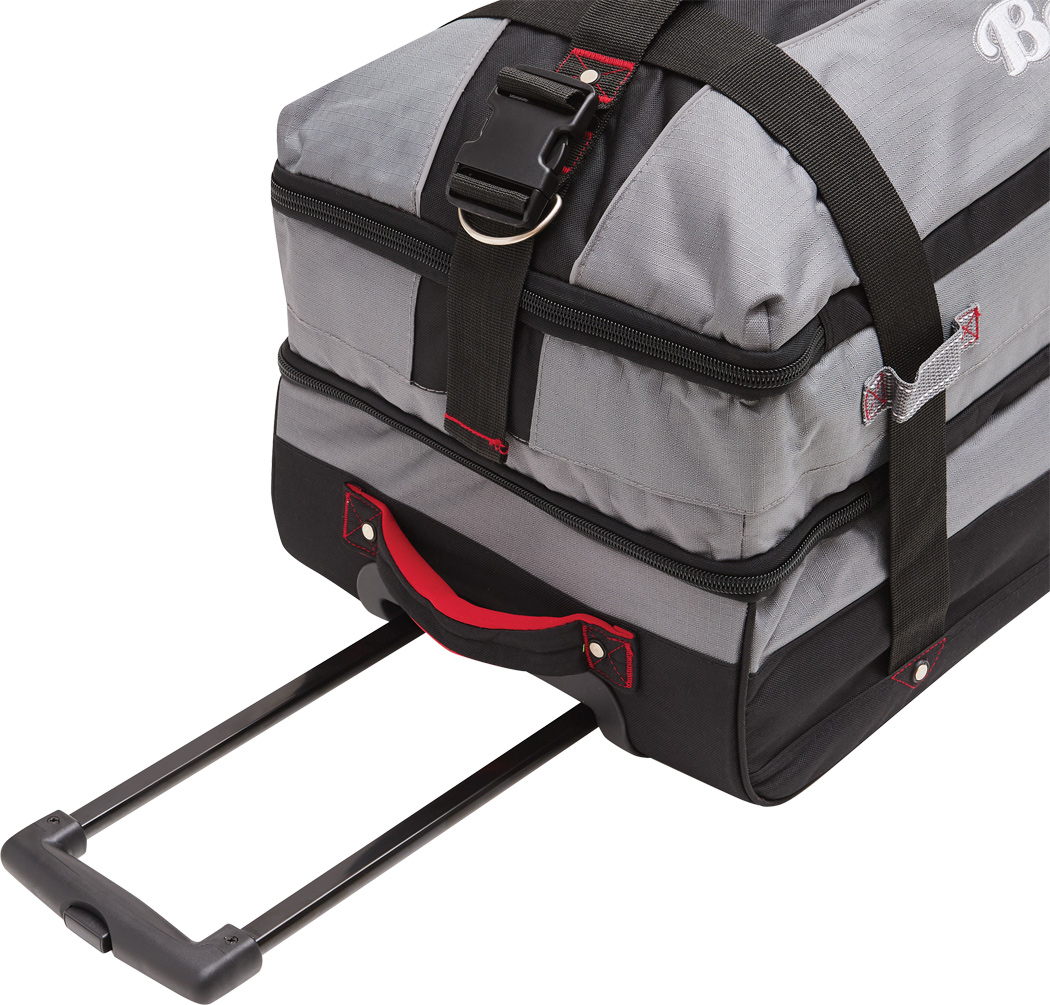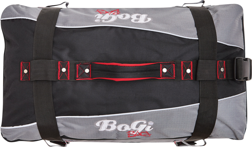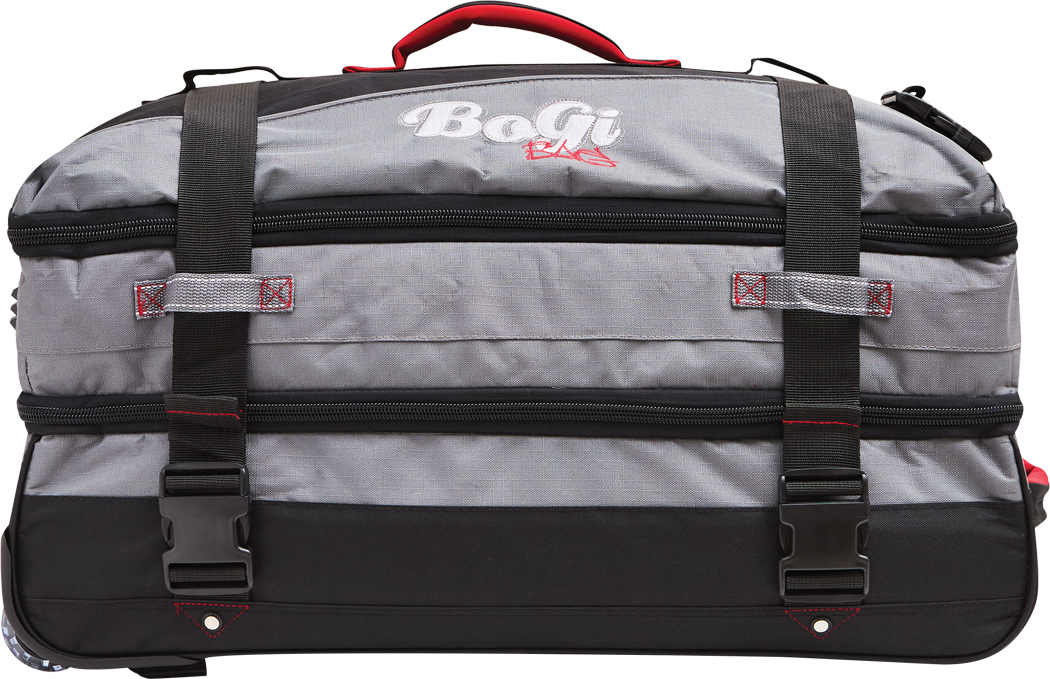 Cestovná taška na kolieskach BoGi L: samostatné úrovne balenia so zipsom, hlavná priehradka s 2 prepážkami, 1 sieťované vrecko na zips na jednej z prepážok, 2 vnútorné vrecká na zips, 2 polstrované madlá, zaťahovací systém na kolieskach, 2 kompresné popruhy s bočnou sponou, priehradka na adresu na zadnej strane, kolieska s hladkým chodom, ochrana hrán, 2 koľajničky na prepravu po schodoch a nožičky v spodnej časti, súčasťou balenia je kombinačný zámok.