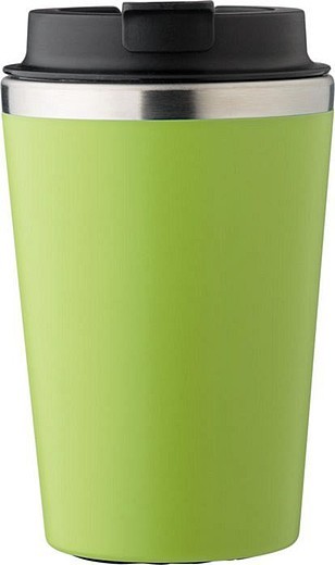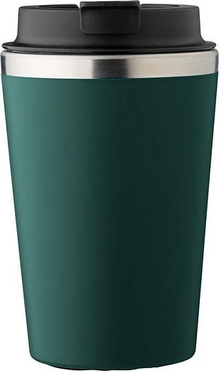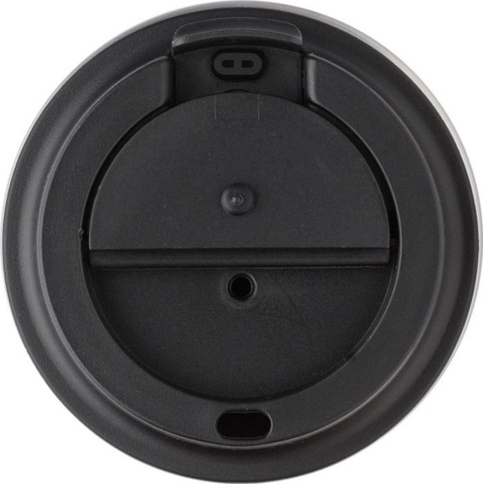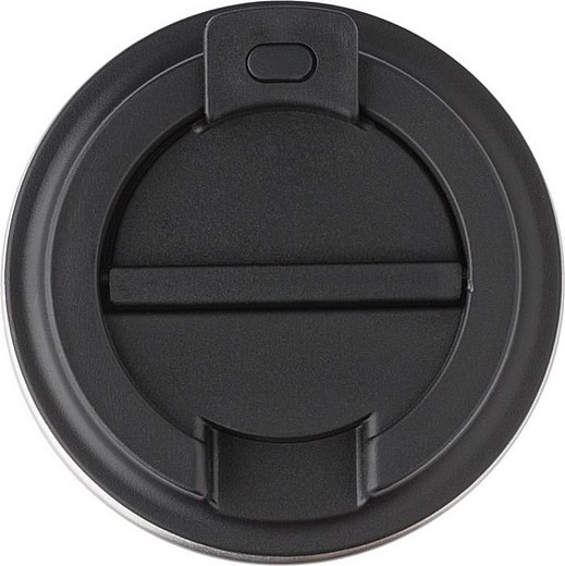 Cestovný hrnček z nerezovej ocele a PP, 350 ml. Viečko so skladacím uzáverom má silikónový tesniaci krúžok. Jednotlivo balené v hnedej kartónovej krabici. Rozmery: ∅8,9x15cm.