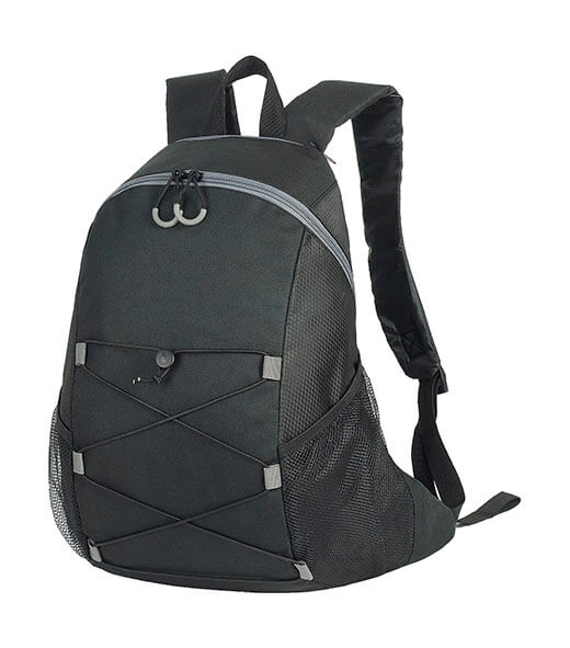 · 100% polyester (600D / 420D ripstop) · Športový, ľahký batoh · Nosná rukoväť · Nastaviteľné, polstrované ramenné popruhy · Hlavná priehradka so zipsom · Vrchné vrecko na zips · Bočné sieťované vrecká · Predné sťahovacie šnúry · Kapacita: 16 litrov · Rozmery: 30 x 14 x 45 cmVhodný pre transfer, sieťotlač a výšivkuMax. Vylepšenie okrúhlymi vyšívacími rámami (veľkosť 10) Max. Plocha tlače: 10 x 13 cm.