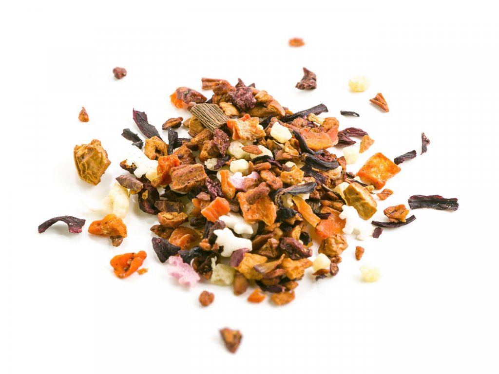Čaj Chillíček je ovocná čajová zmes pre večných optimistov a milovníkov pozitívnej energie. Vychutnaj si dúšok slnka, farieb a fantázie, kde ťa prekvapia aj cukroví jednorožci. Čaj možno zaliať dvakrát, odporúčané lúhovanie 8–10 minút.Zloženie: kandizované kúsky ananásu, kúsky jablka, mrkvy, kvety ibišteka, biele a ružové jednorožce z cukru, kúsky červenej repy, jahody, vanilky, farbivo (koncentrát z červenej repy), prírodná aróma. Váha: 70 g