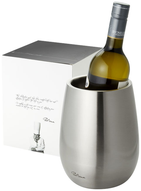 Chladiaca nádoba na víno Coulan. Dvojplášťová chladiaca nádoba na víno z nerezovej ocele, dodávaná v darčekovej kazete Paul Bocuse. Exkluzívny dizajn. Nerezová oceľ.