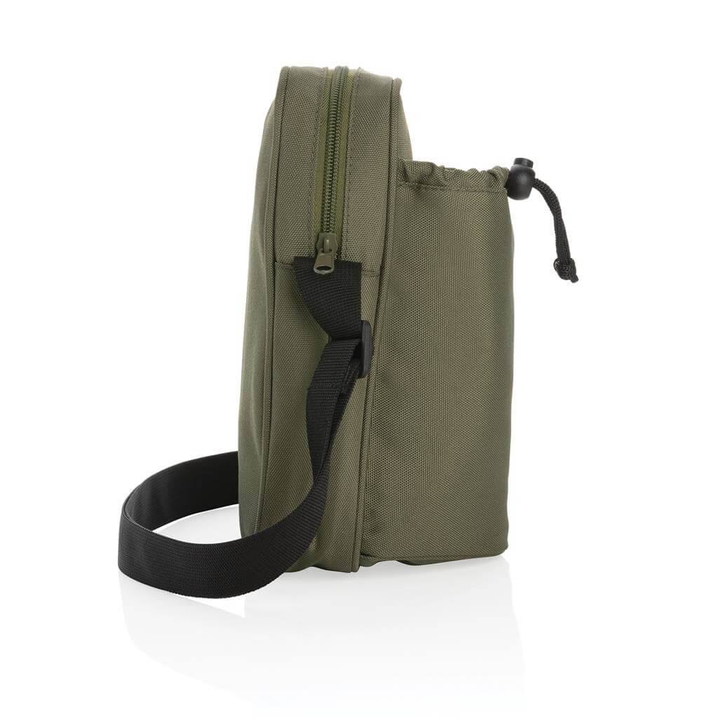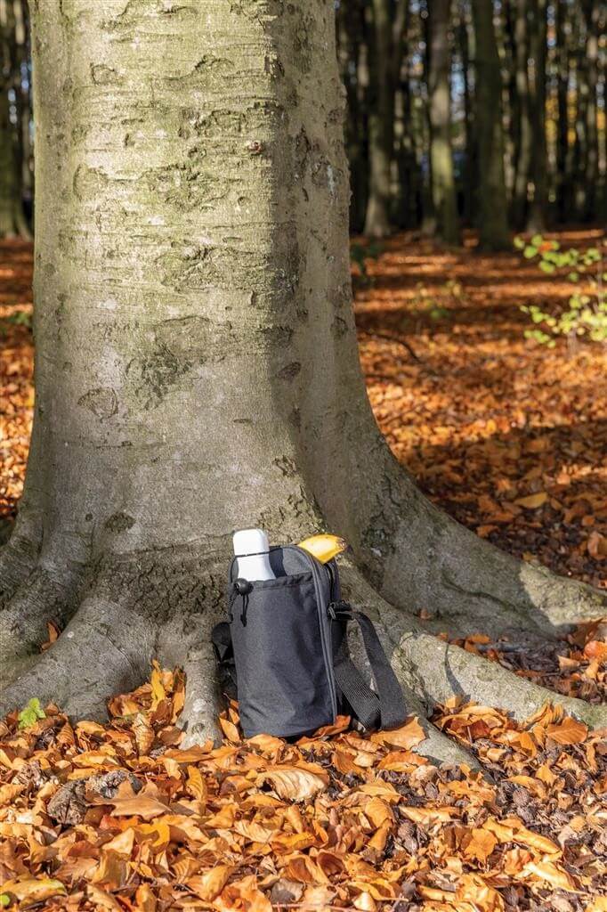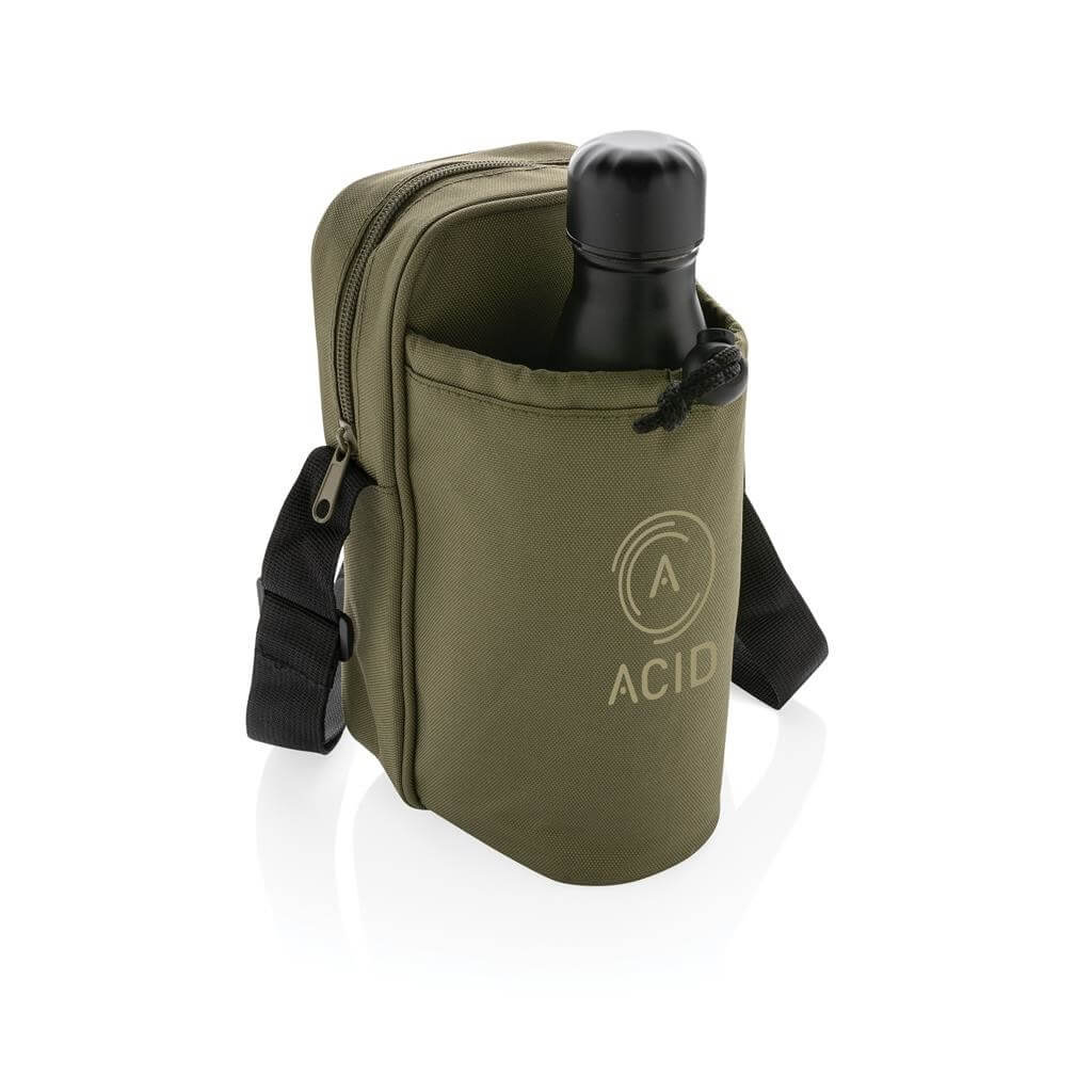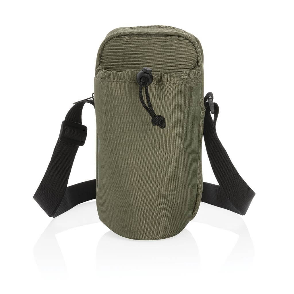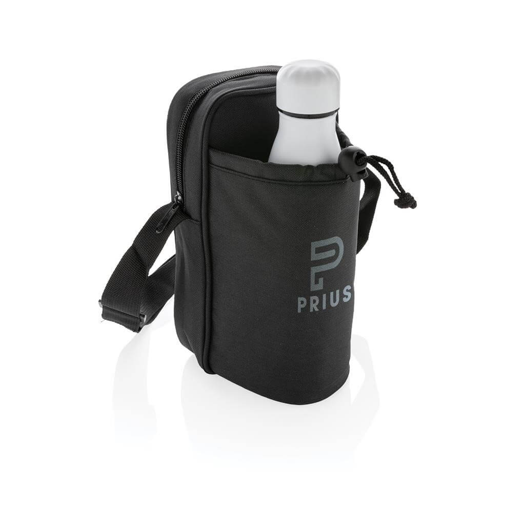 Unikátna chladiaca taška s priečnym popruhom pre pohodlné nosenie a voľné ruky pri outdoorových aktivitách. Hlavná priehradka na zips, sťahovacie šnúrky na prenos fľaše. Ideálna veľkosť fľaše je 25 x 7,5 cm. Prispôsobiteľný ramenný popruh. Vonkajší materiál 600D polyester, vnútorný 210D polyester a PEVA. Bez PVC .