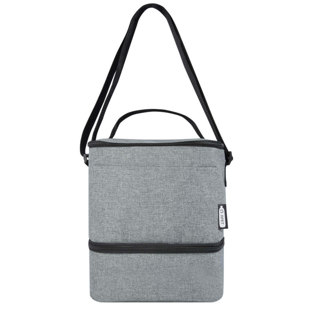 Chladiaca taška na obed z recyklátu Tundra poskytuje dostatok úložného priestoru pre všetky vaše dobroty na obed. Má hornú a spodnú izolovanú priehradku na zips. Spodná priehradka je ideálna pre váš bento box a predné lomené vrecko je ideálne na uloženie tvárovej masky alebo iných drobností. Výstelka a exteriér chladiacej tašky z PEVA sú vyrobené z recyklovaného PET plastu.