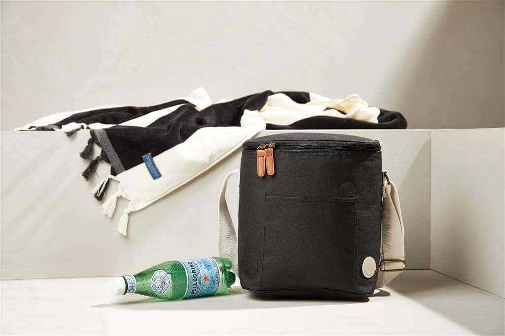 Táto moderná chladiaca taška s čistým vzhľadom bude vaším verným priateľom na budúcom pikniku. Je o niečo menšia, takže sa ľahko nosí cez rameno aj v ruke. Chladiaca taška je vyrobená z melanžovej tkaniny doplnenej o PU detaily, vďaka ktorým je rovnako módna ako bežná taška. Vyrobená z 50% z polyesteru z recyklovaných PET fliaš a detaily sú z PU. Vďaka vnútornej povrchovej úprave z PEVA sa ľahko čistí.