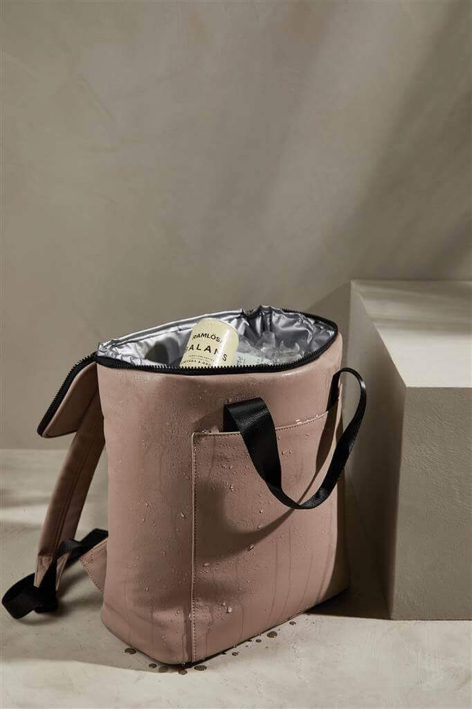 Minimalistický chladiaci batoh z vodoodpudivého nubukového PU materiálu. Tento chladiaci batoh je izolovaný extra silnou penou s podšívkou z ľahko udržiavateľného materiálu PEVA. Fantastický batoh na pláž, na loď alebo na dobrodružné výlety.