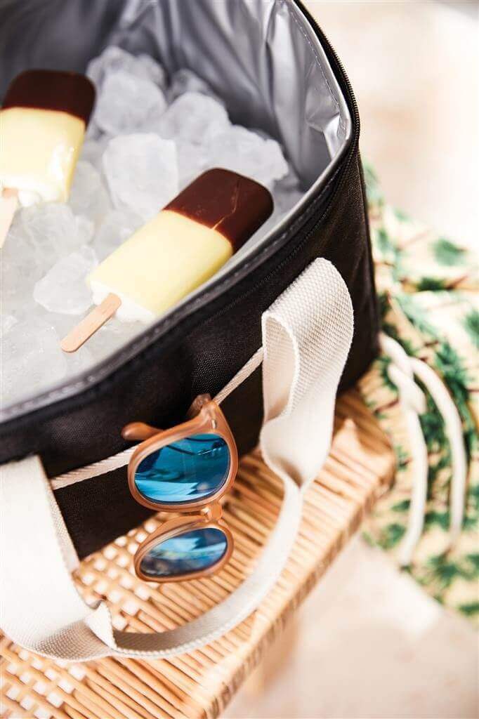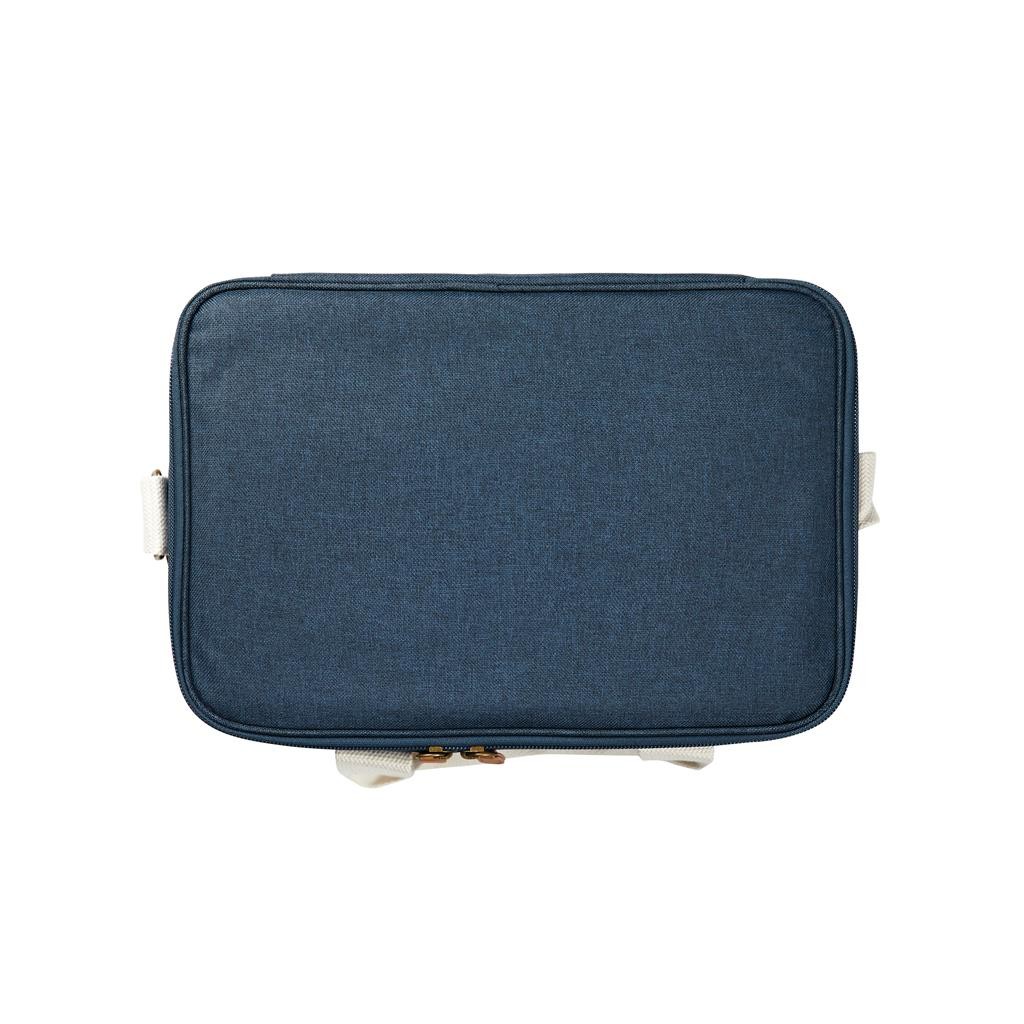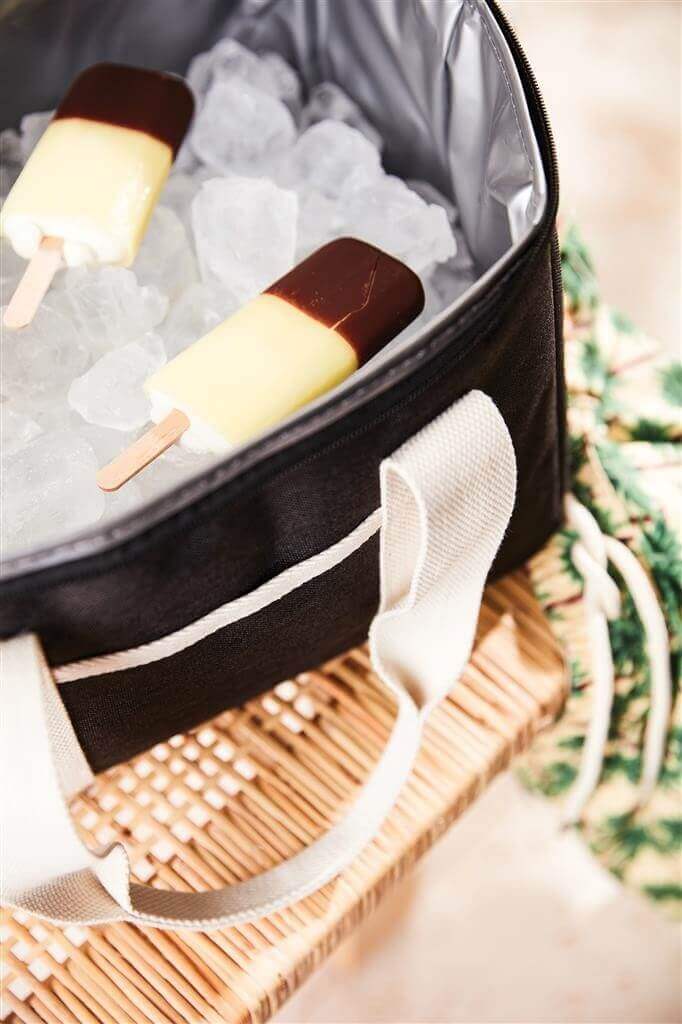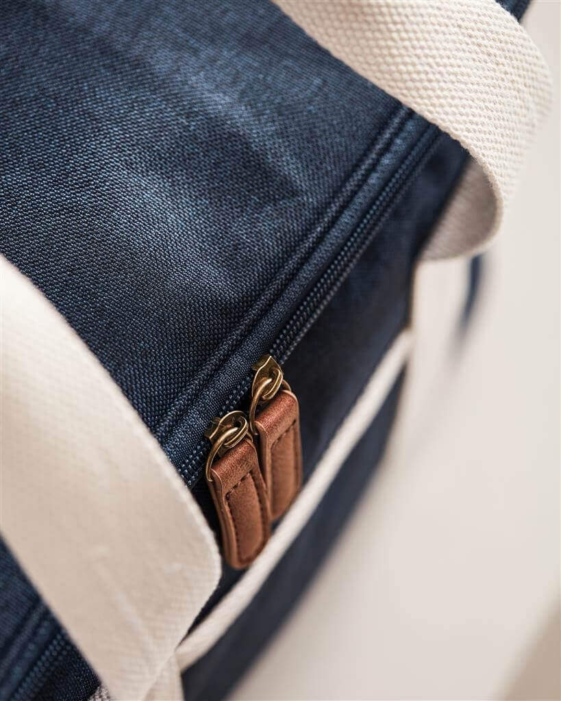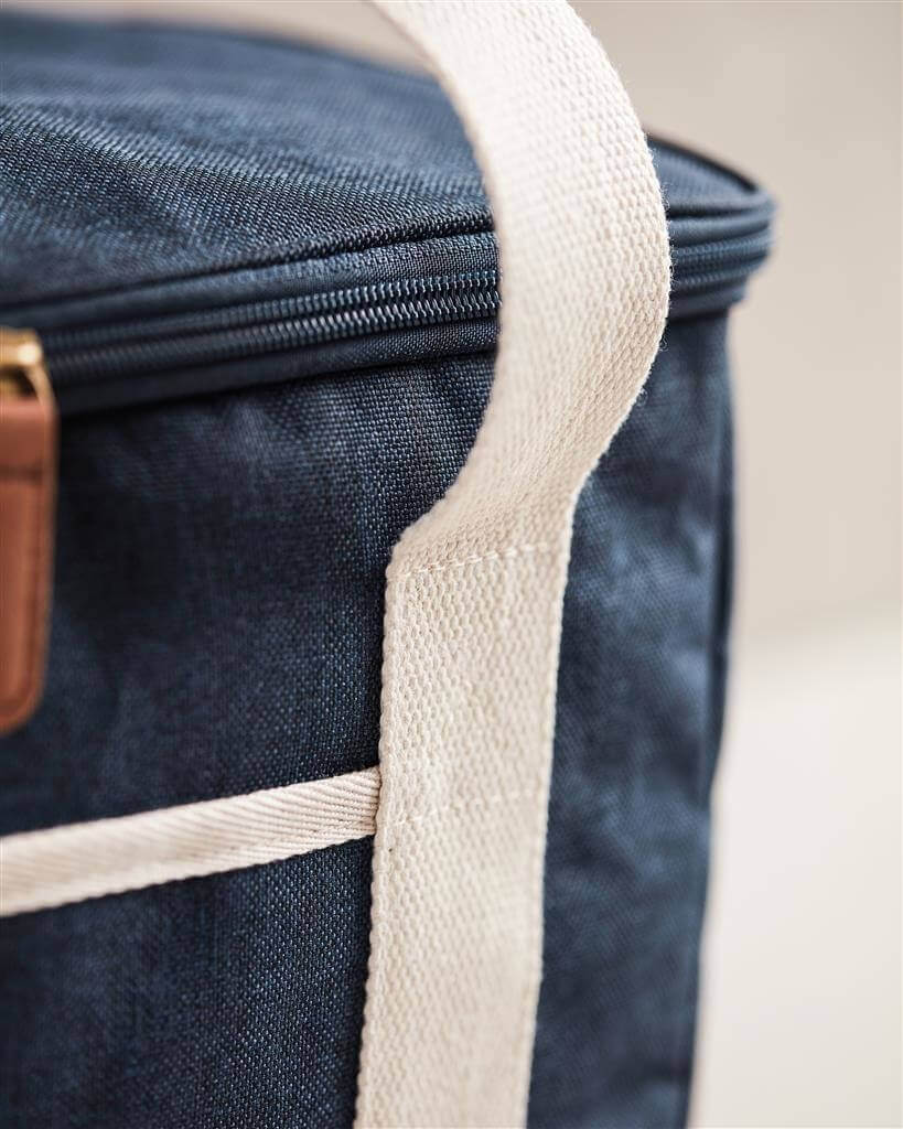 Dokonalý chladiaci kôš, tón v tóne s detailmi z imitácie kože a bavlny. Vyrobený z 50% z recyklovaného materiálu z PET fliaš. Na vonkajšej strane chladiaceho koša je malá priehradka, kam je možné uložiť ďalšie nevyhnutnosti. Silná výplň z materiálu PEVA zaisťuje dlhodobé udržanie chladu. Po použití sa ľahko čistí a suší. Vďaka nastaviteľnému ramennému popruhu a dvojitej rukoväti je možné ho nosiť niekoľkými spôsobmi.