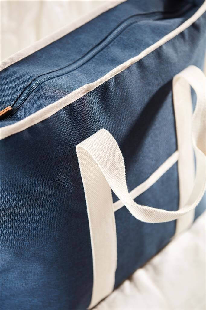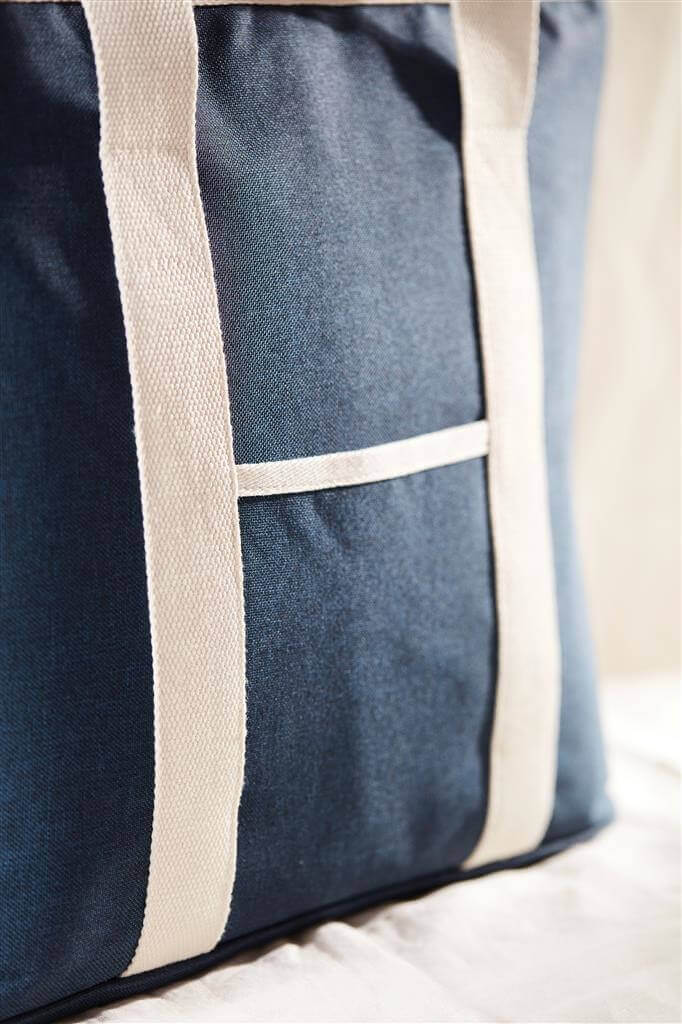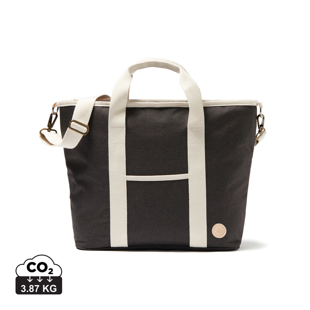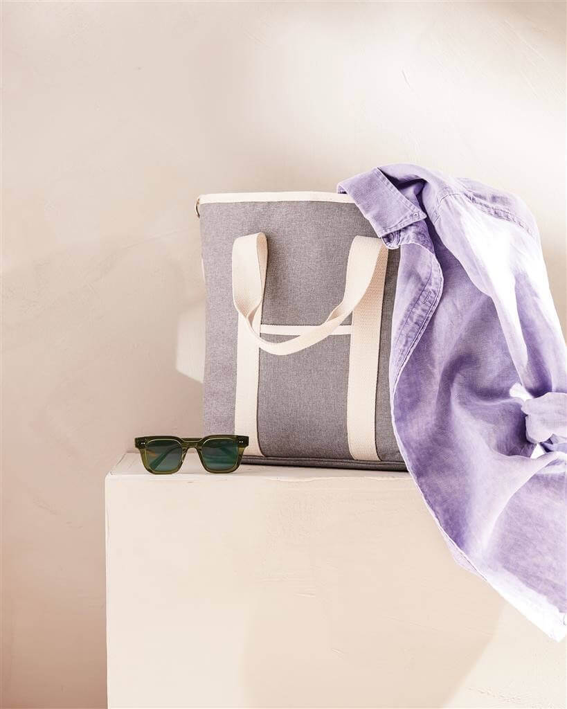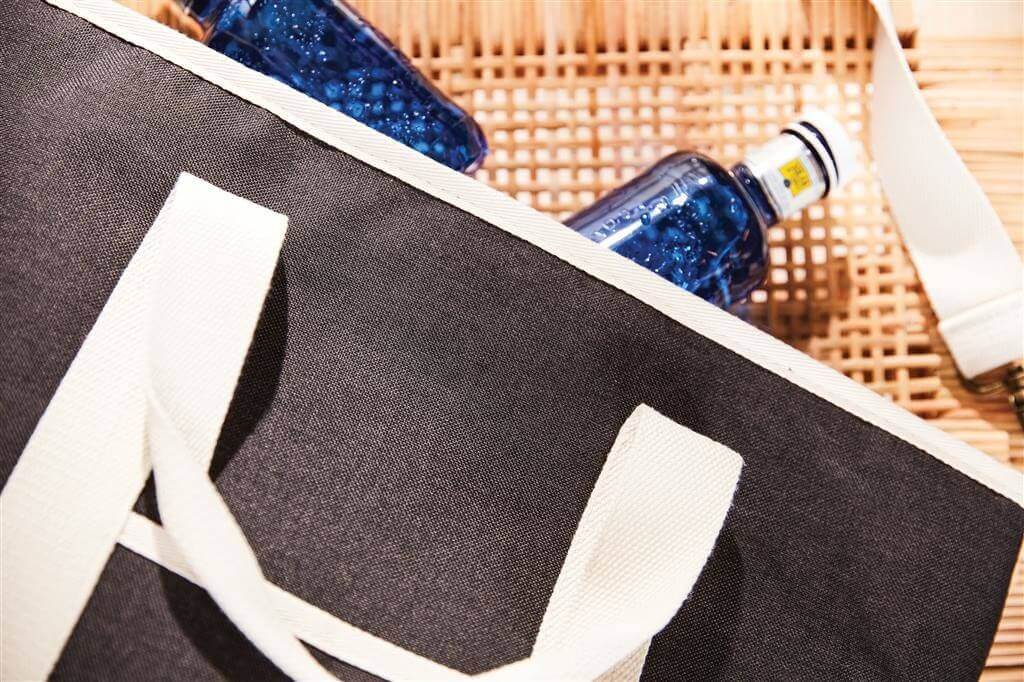 Chladiaca taška s detailmi z imitácie kože a bavlny tón v tóne je rovnako krásna ako bežná taška a zároveň je vhodná pre vaše štýlové pikniky. Vyrobená z 50% z recyklovaného materiálu z PET fliaš. Na vonkajšej strane je malá priehradka, kam je možné uložiť ďalšie nevyhnutnosti. Silná výplň z materiálu PEVA zaisťuje dlhodobé udržanie chladu. Po použití sa ľahko čistí a suší. Vďaka nastaviteľnému ramennému popruhu a dvojitej rukoväti môžete chladiacu tašku nosiť rôznymi spôsobmi.