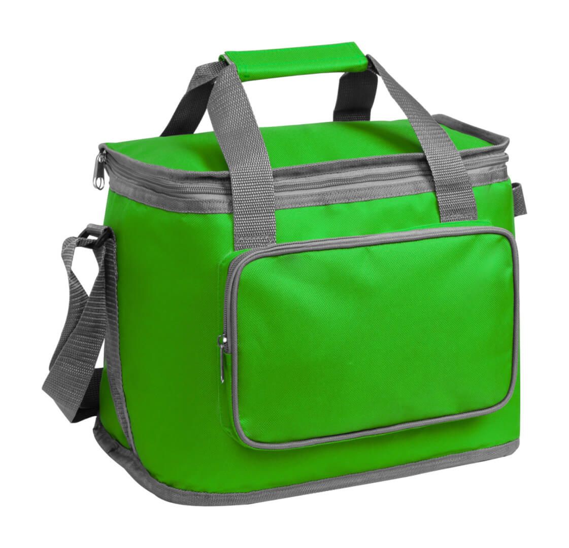 Chladiaca taška na zips s nastaviteľným popruhom cez rameno a zipsom na prednom vrecku. 600D polyester s PEVA podšívkou.