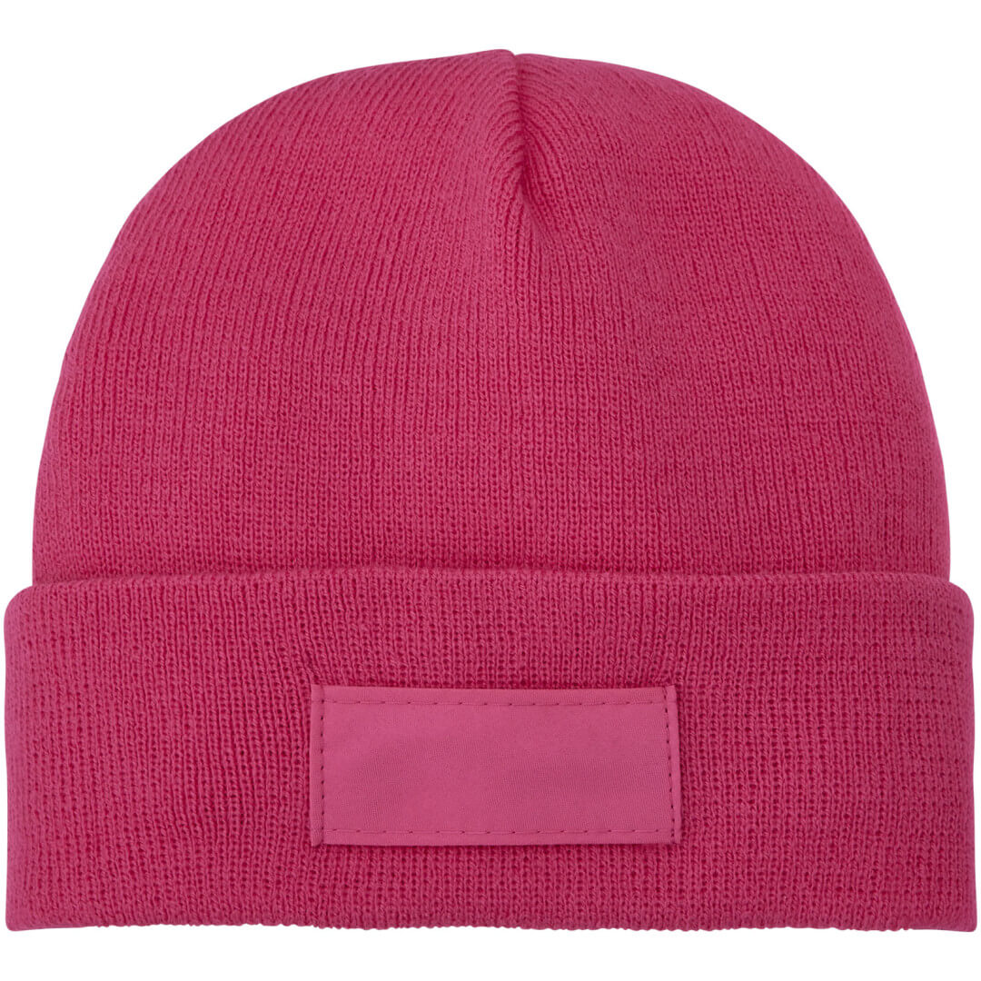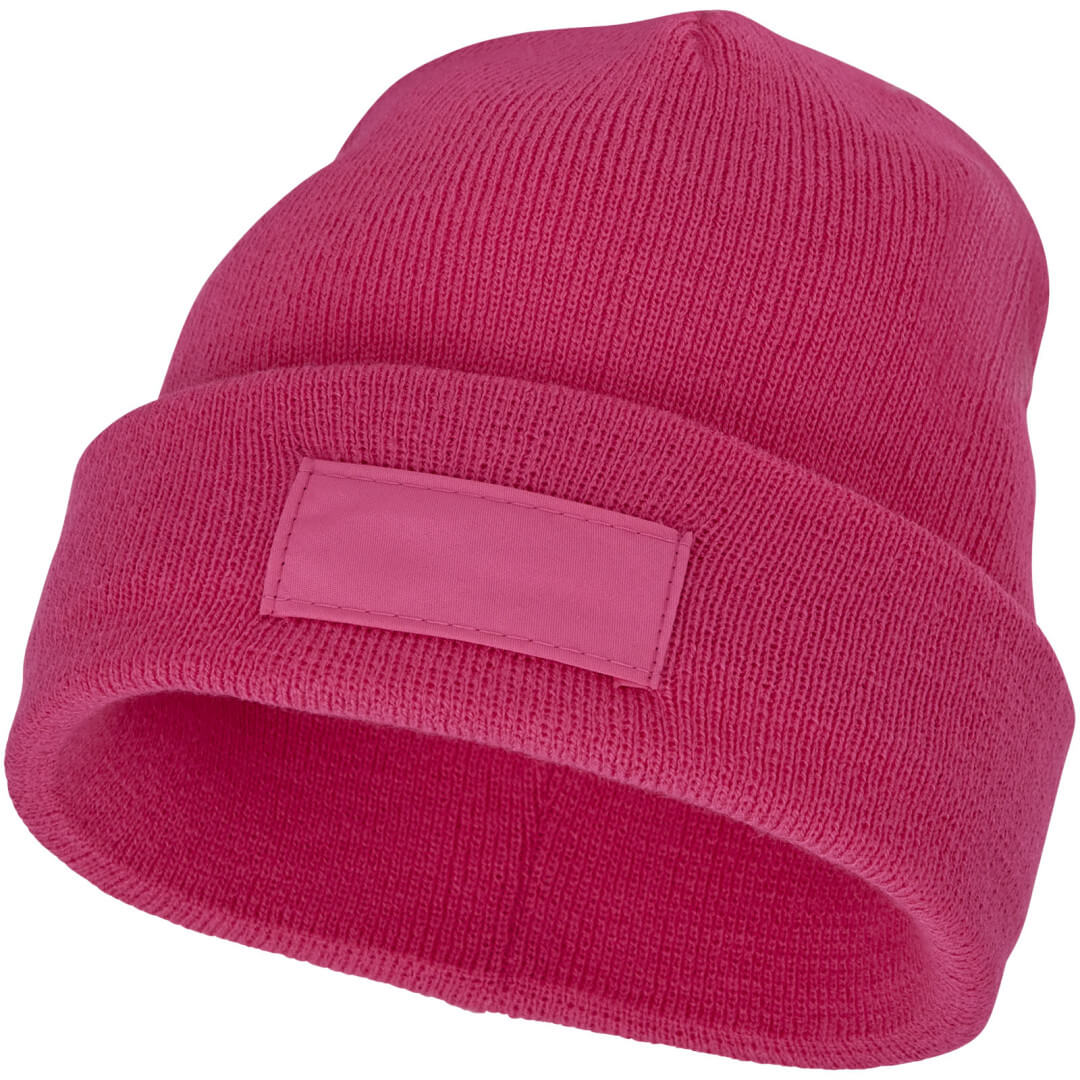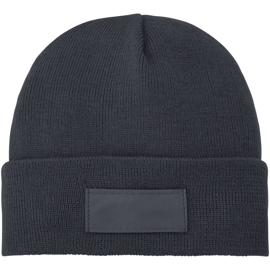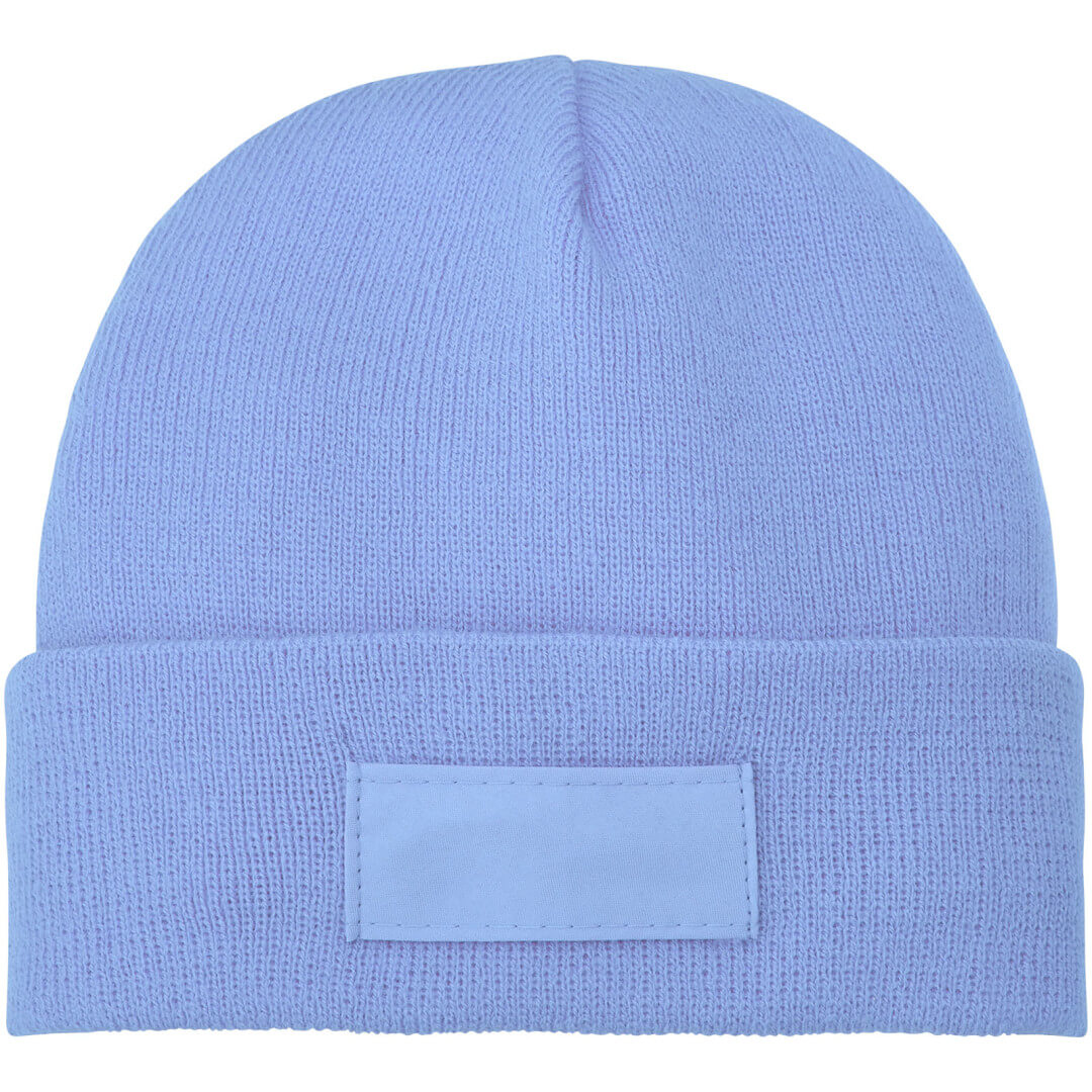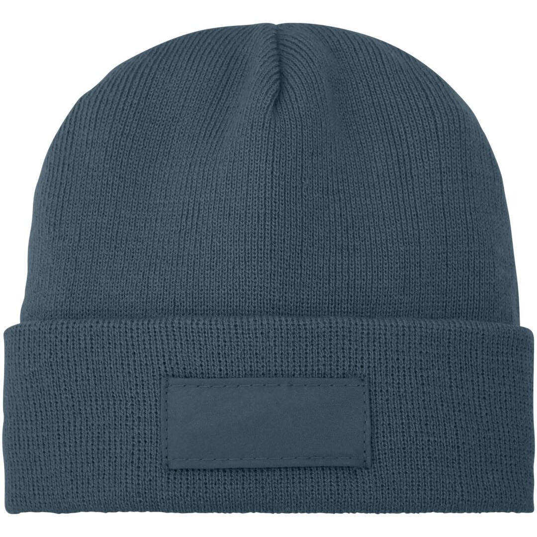 Čiapka Boreas s nášivkou. Jednovrstvová čiapky pretiahnutého tvaru (beanie) s dvakrát preloženým okrajem.Lehká bunda. Jednovrstvová čiapka s preloženým okrajom. 1x1 rebrovaný pletený vzor, zo 100% akrylu. Nášivka zo 100% polyesteru.