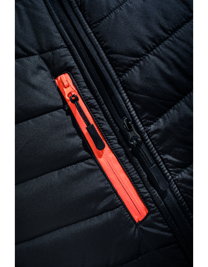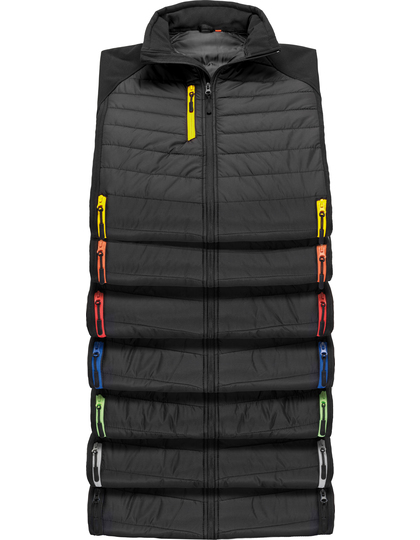 Materiál tela: vonkajšia strana: 100% recyklovaný polyester JIAREN®, výplň: 100% recyklovaný polyester REPREVE® 180 g/m², podšívka: 100% polyester. Materiál rukávu: 280 g/m² 2vrstvová mechanická priadza softshell obsahujúca: vonkajšia vrstva – 60% polyester / 40% recyklovaný polyester TOPGREEN®, vnútorná vrstva – 70% polyesterový mikroflís / 30% recyklovaný polyester TOPGREEN®. Odolné voči vetru, Priedušné. Kontrastné vrecká na zips. Zip YKK s ochranou brady vpredu po celej dĺžke. Polstrovaný stojačik. Polstrované telo. Mäkká viazaná manžeta. Čierne šnúrky zipsu. Závesný štítok. Funkčný recyklovaný materiál polstrovanie REPREVE® s použitím ekologických materiálov z recyklovaných plastových fliaš a priemyselného odpadu. Ekologický softshellový polyester TOPGREEN®, potlačiteľné ramenné panely. Pripravené na opatrenie značkou. Vyrobené z 14 (1litrových) plastových fliaš.
