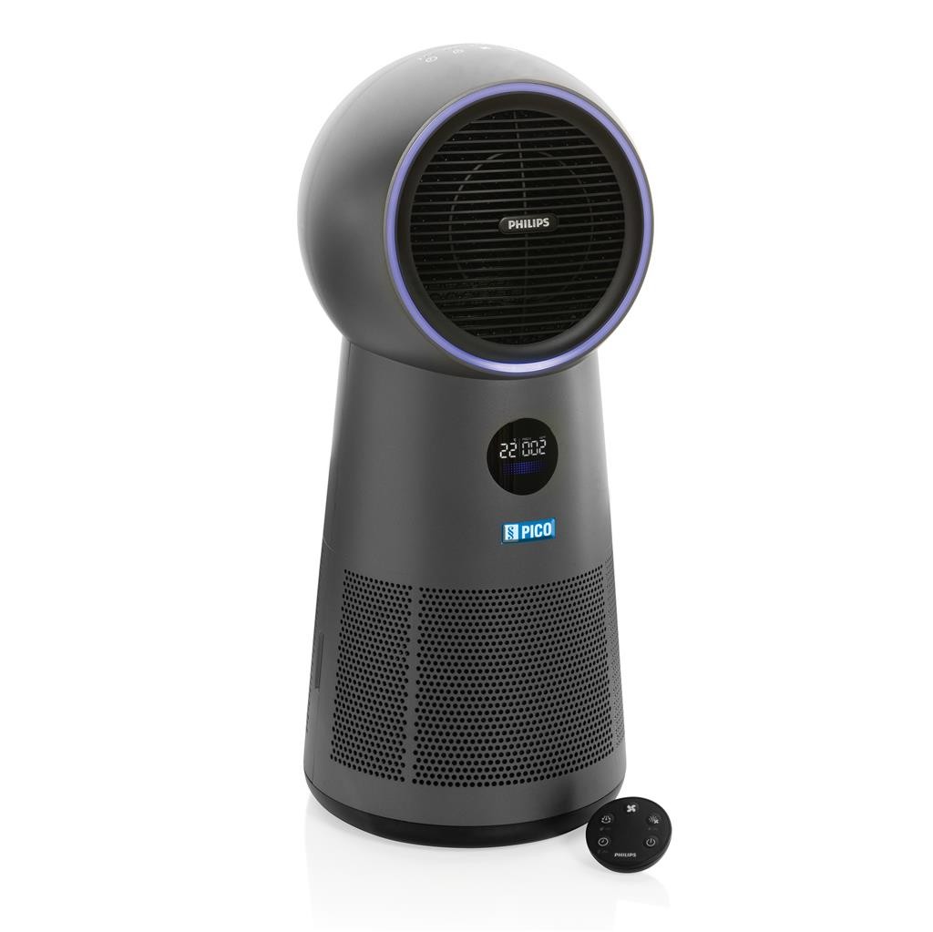 Multifunkčná čistička vzduchu s ventilátorom a ohrievačom. Zameriava sa teda na podmienky v domácnosti týkajúce sa kvality a čistoty vzduchu, chladenia a ohrev. HEPA filter zaisťuje čistenie vzduchu od vírusov, alergénov a ďalších nečistôt. Otočná hlava čistý vzduch distribuuje až v 350 °. Zároveň je možné v teplých dňoch nastaviť režim chladenia alebo naopak v chladných dňoch nastaviť ohrev. Pre podrobné informácie prejdite na www.philips.com a vyhľadajte "AMF 220".