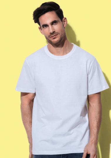 185 g/m², 100% bavlna (Single Jersey), prstencová, Grey Heather: 85% bavlna, 15% viskóza, okrúhly výstrih, všité rukávy, spevňujúca páska na krku a na ramenách, tubulárna textília, voľný strih