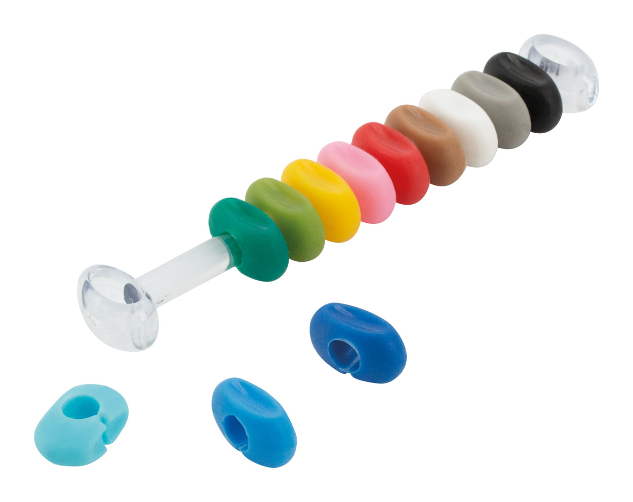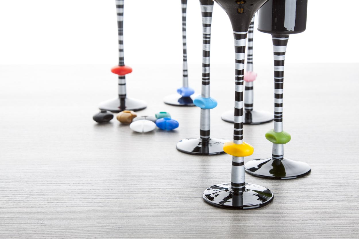 12 ks silikónových rozlišovačov na poháre s plastovým držiačikom.