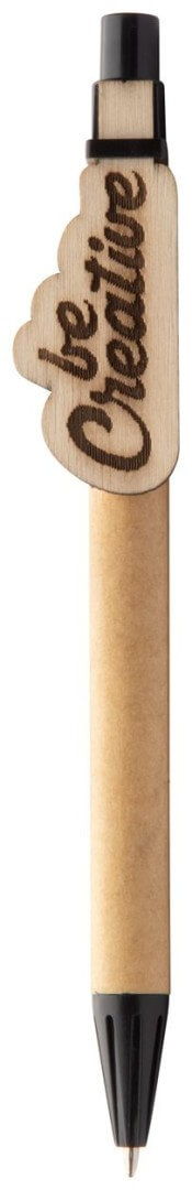 Recyklovateľné guľôčkové pero s dreveným klipom na zákazku a modrou náplňou. Klip môže byť vyrobený podľa vlastného tvaru - maximálny rozmer je 25x35 mm. Cena zahŕňa logo laserom, nezahŕňa tlačovú prípravu. Min. mn .: 100 ks.