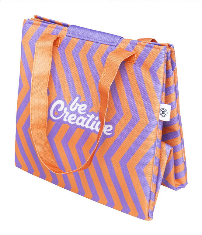 Chladiaca taška na zákazku z 600D RPET polyesteru s hliníkovým polstrovaním, zapínaním na suchý zips a dlhými rukoväťami. Slúži aj ako košík a je možné ju rozložiť na použitie ako piknikovú deku. S celoplošnou sublimačnou potlačou a výrazným štítkom RPET. Cena nezahŕňa tlačovú prípravu. Min. mn.: 25 ks. Be Creative. Nosnosť tašky: 1.5 kg. Objem tašky: 15.625 l