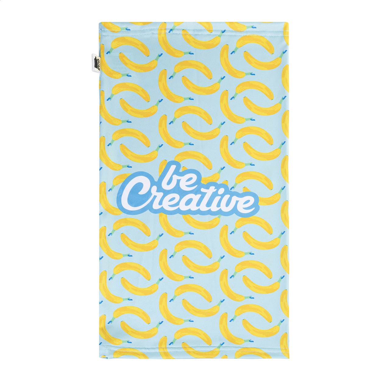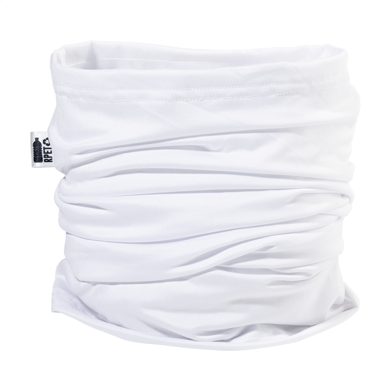 Na zákazku vyrobená viacúčelová šatka z RPET s celoplošnou sublimačnou potlačou. 92% RPET polyester a 8% elastan (185 g/m²), s výraznou RPET etiketou. Cena nezahŕňa tlačovú prípravu. Min. mn.: 50 ks. New. Go Green. Be Creative. Material 2 weight: 185 g/m2