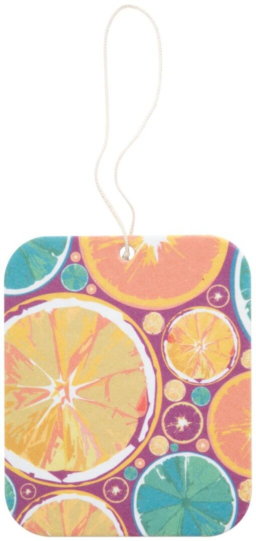 Aromatická visačka do auta na zákazku s výberom vlastného tvaru a vôňe (zelené jablko, tropická, mentol, citron, oceán, nové auto, jahoda, broskyňa, vanilka). Potlačené až 4mi farbami na každej strane. Min. mn.: 300 ks.