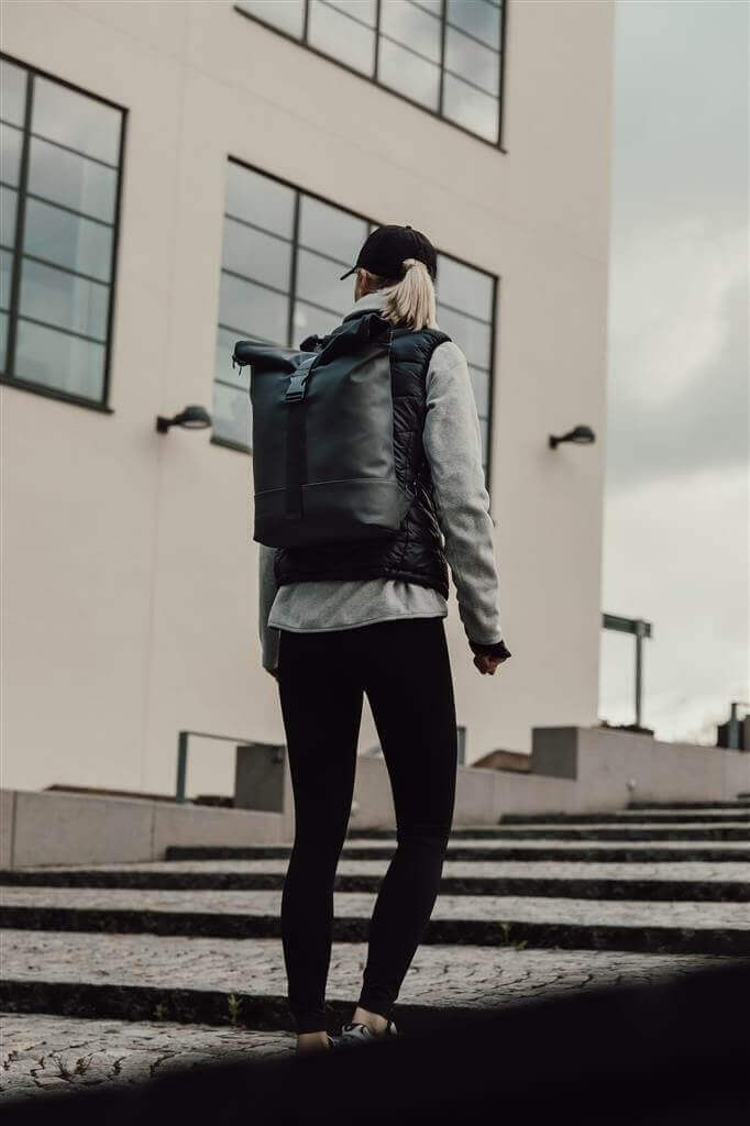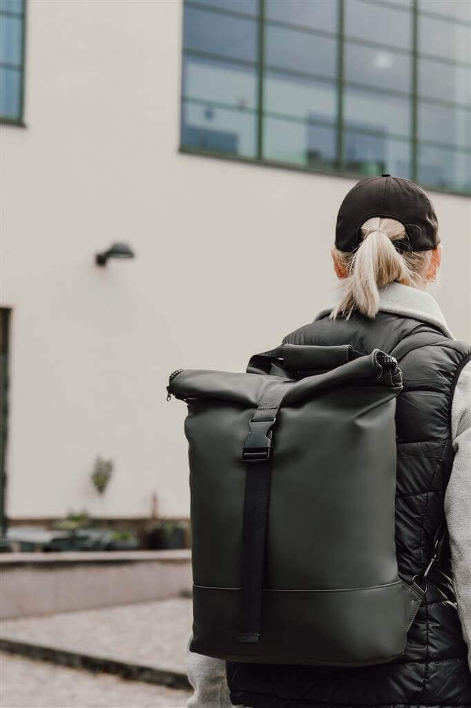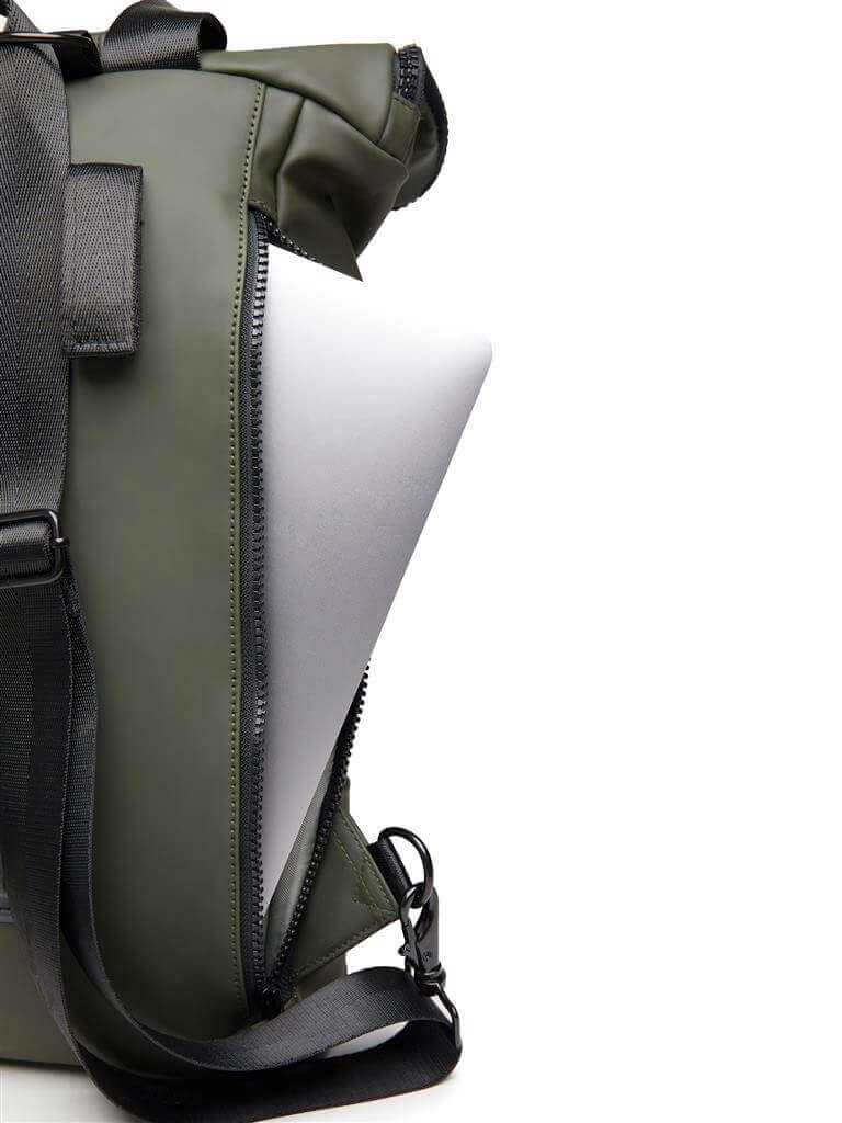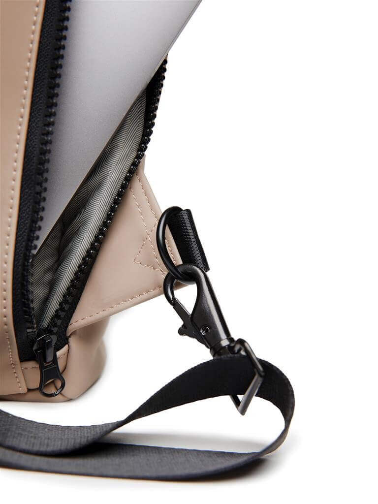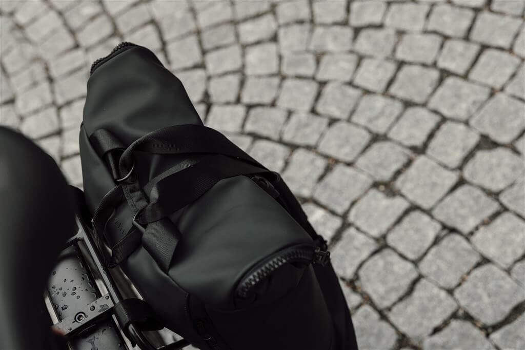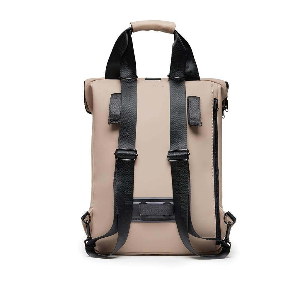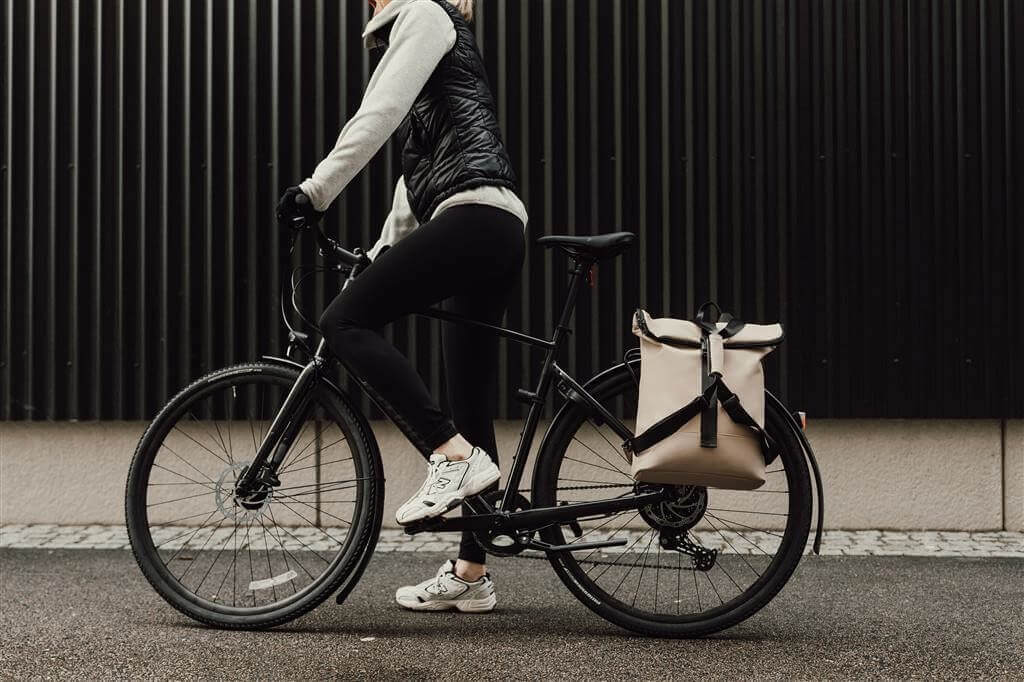 Elegantná, moderná taška z pružnej vegánskej/nubukovej PU kože. Toto univerzálne prevedenie je možné nosiť ako batoh alebo ako tašku - môžete pohodlne jazdiť do práce s taškou na chrbte a potom si ju prehodiť cez rameno, keď vyrazíte na obed. Polstrované vrecko na notebook je ideálne pre uloženie vašich zariadení. Túto tašku môžete tiež pripevniť k rámu kolesa. Dokonalá kombinácia praktickosti a štýlu!